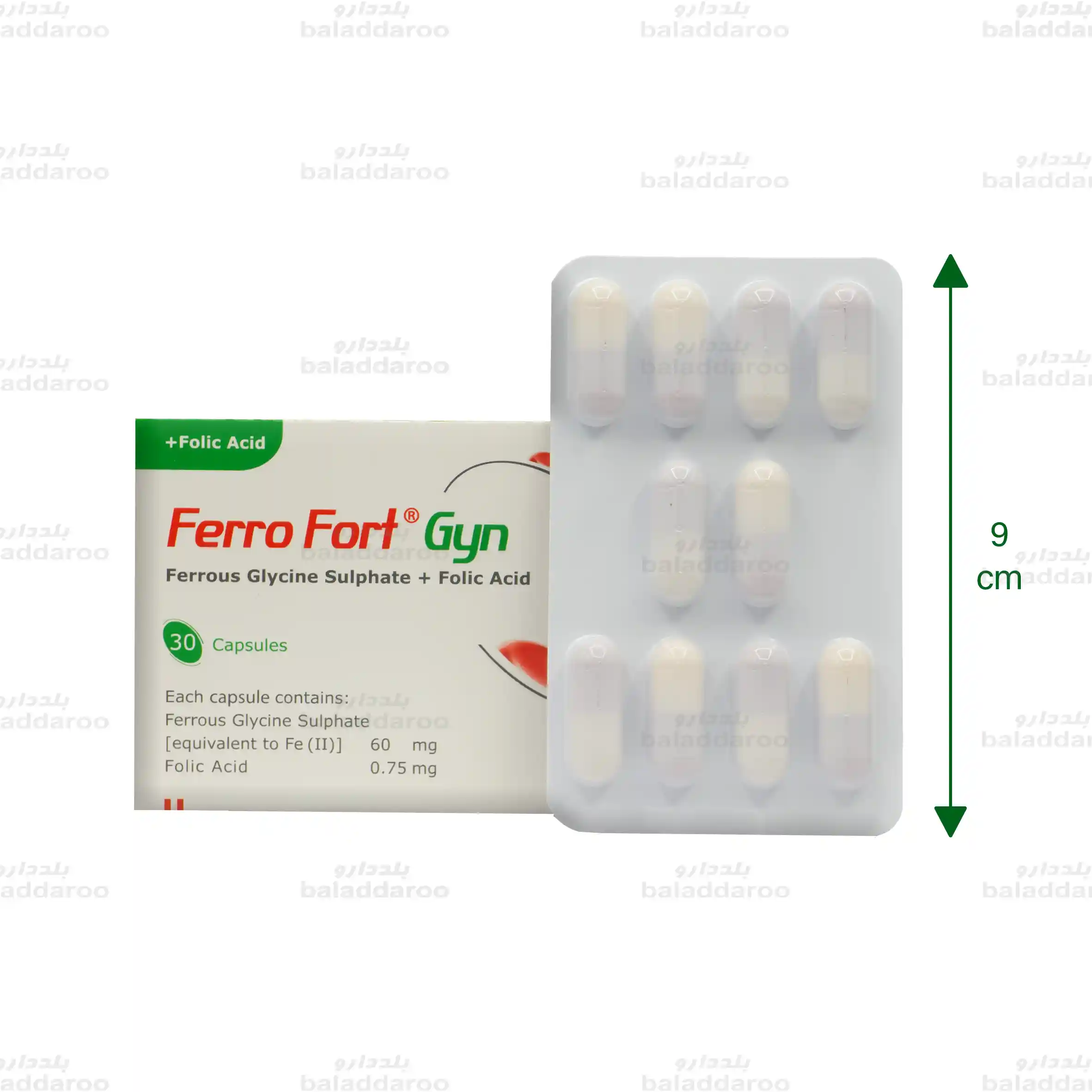 فرآورده ای حاوی 60 میلی گرم فروس گلایسین سولفات و 0.75 میلی گرم فولیک اسید است. این مکمل آهن، به درمان کم خونی های ناشی از فقر آهن، تامین فولیک اسید و ساخت گلبول های قرمز کمک می کند. همچنین آهن عنصری ضروری در بدن است که نقش اکسیژن رسانی از ریه به سراسر بدن را دارد. مصرف مکمل هایی مانند فروفورت گاین که حاوی مقدار کافی آهن و فولیک اسید برای بدن است، به جلوگیری و رفع علائم کمبود آهن از جمله کمبود انرژی، خستگی، ریزش مو، تنگی نفس، رنگ پریدگی و سردرد کمک می کند.