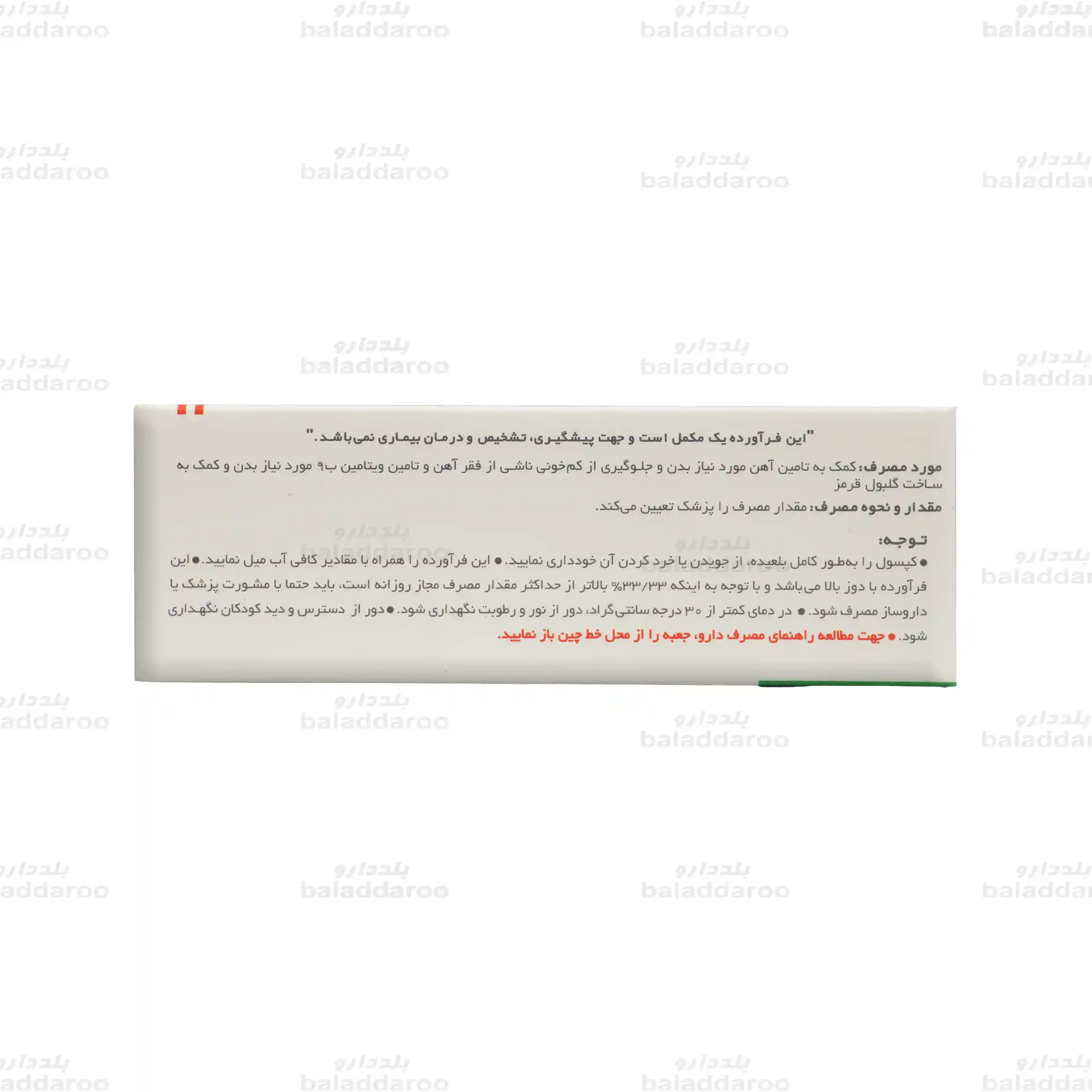 - این فرآورده را با مشورت پزشک یا داروساز مصرف نمایید.
