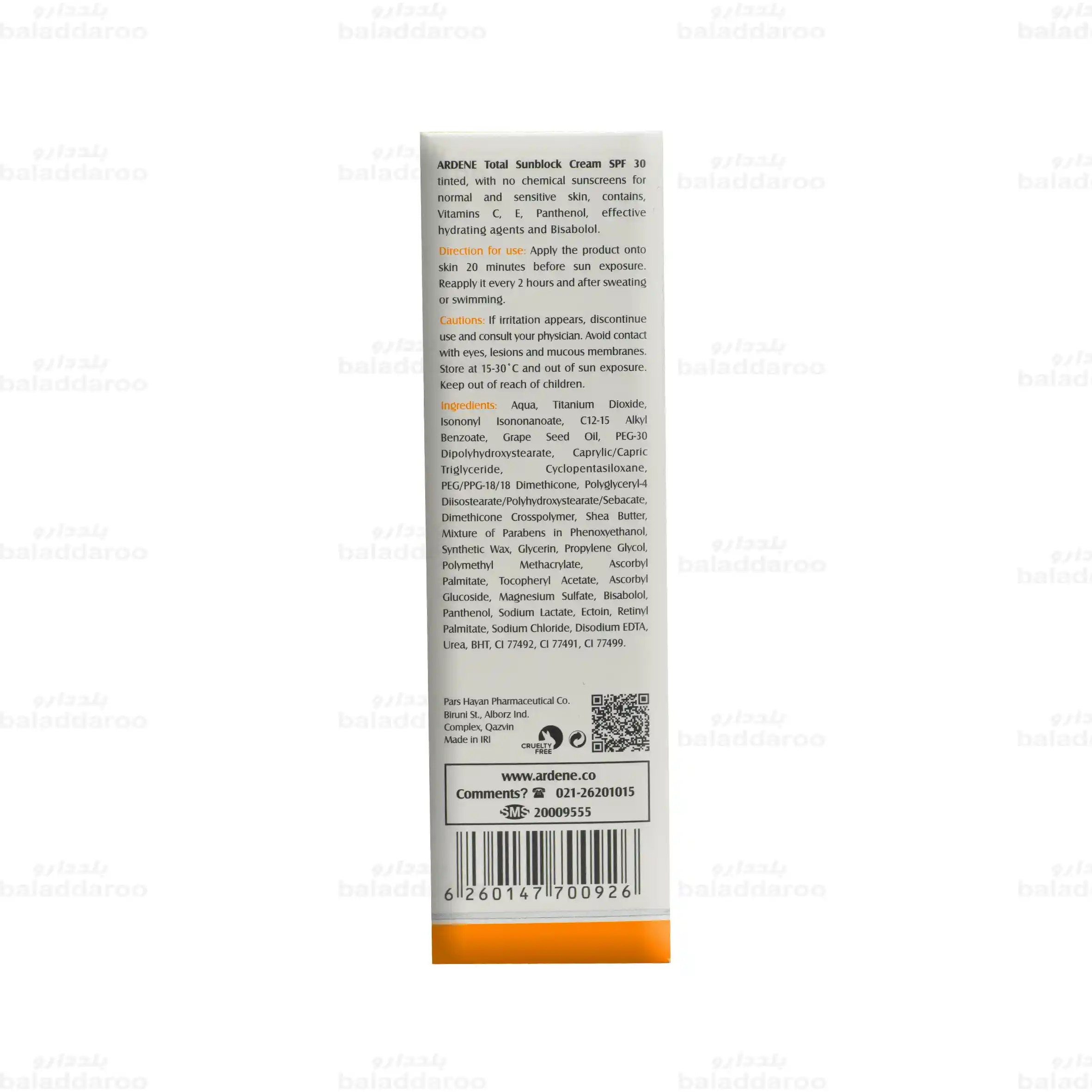 Ardene Total Sunblock Tinted Cream No Chemical Sunscreens SPF30 50 g