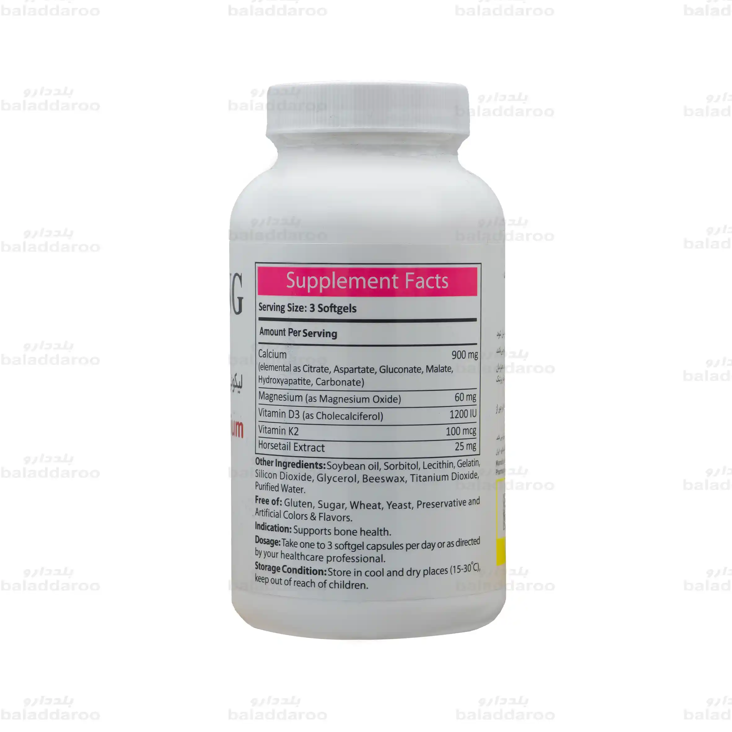 این محصول حاوی 6 ملح متفاوت کلسیم، منیزیم، ویتامین D3، ویتامین کا 2 و عصاره گیاه دم اسب است که علاوه بر جذب بالا و هضم آسان، به سلامت استخوان ها نیز می پردازد. همچنین در استحکام استخوان ها و جلوگیری از پوکی استخوان نیز نقش موثری ایفا می کند. این محصول به دلیل فرم کپسول نرم ژلاتینی احتمال بروز عوارض گوارشی ناشی از مصرف کلسیم از جمله درد معده را کاهش می دهد.