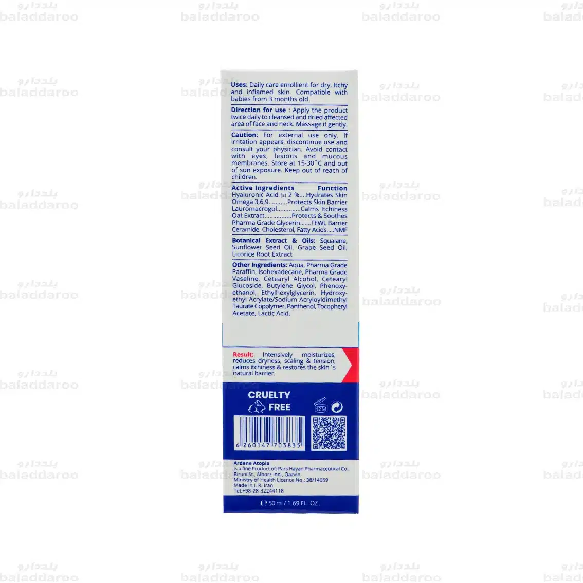 قیمت کرم مرطوب کننده صورت و گردن آردن آتوپیا پوست خیلی خشک مطابق با نرخ مصوب سازمان غذا و دارو تعیین میشود. داروخانه آنلاین بلد دارو تمامی محصولات خود را با قیمت رسمی و تضمین شده عرضه میکند و با ارائه خدماتی همچون ارسال سریع، تخفیفهای مناسبتی و هدایای ویژه، تجربه خریدی آسان، اقتصادی و مطمئن را برای شما به ارمغان میآورد.