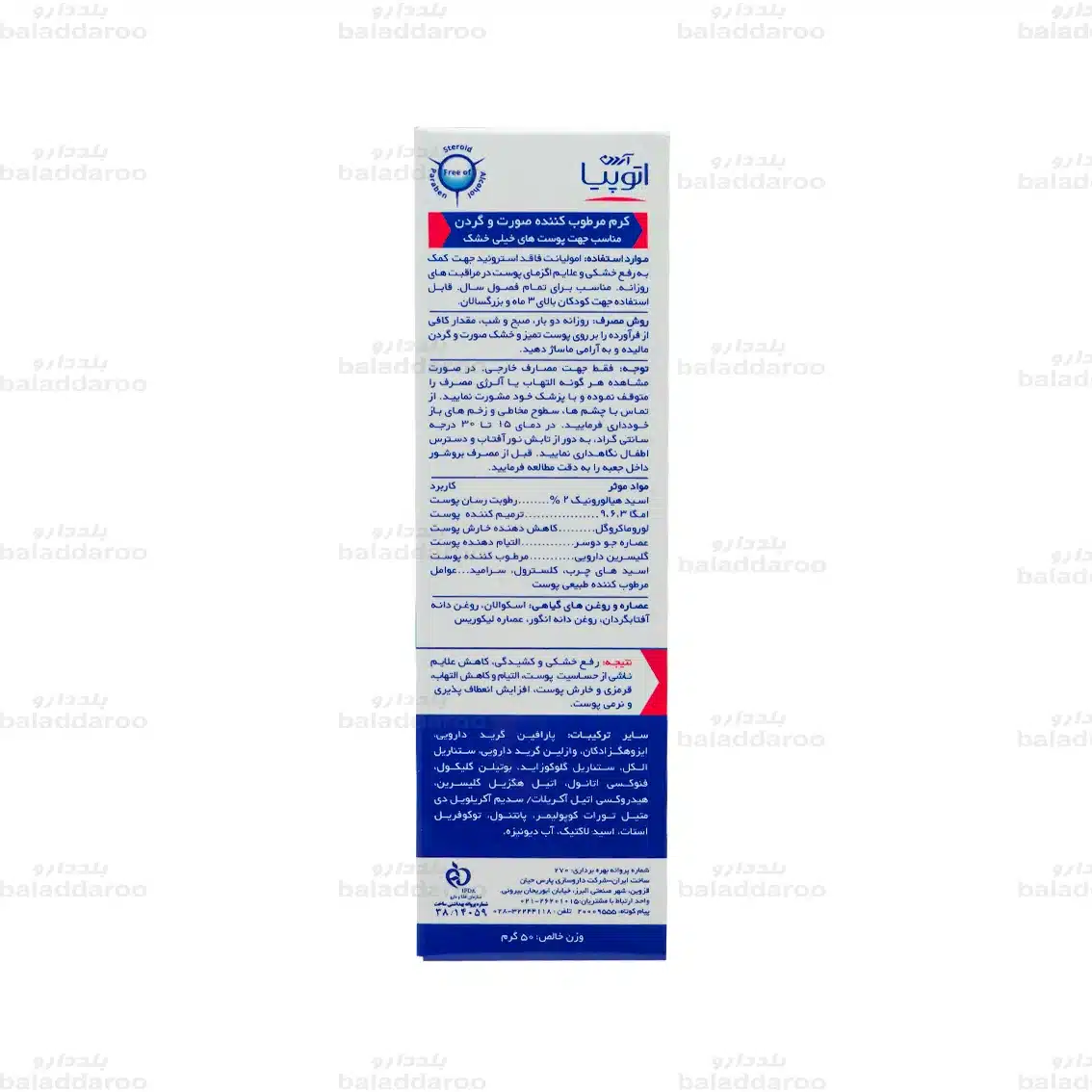 احتیاط های کرم مرطوب کننده صورت و گردن آتوپیا آردن