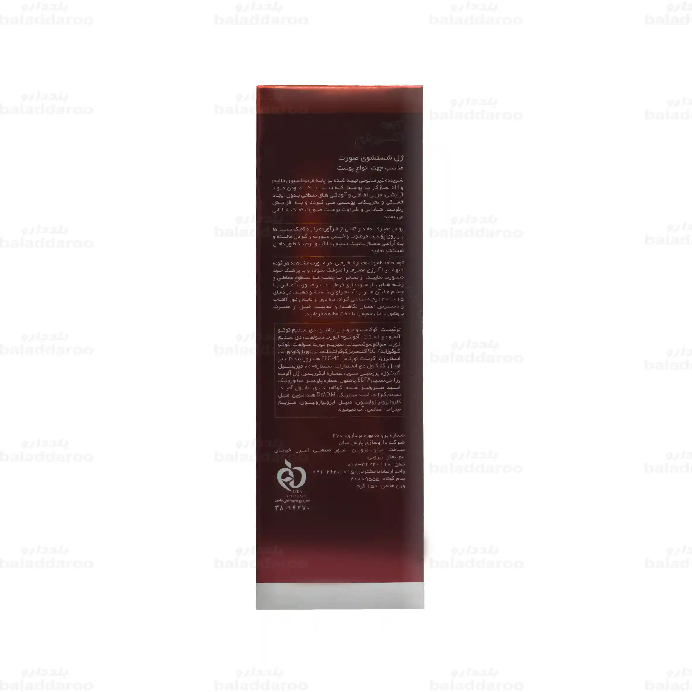 | بسته بندی | یک تیوپ 150 میلی لیتری در یک جعبه |
