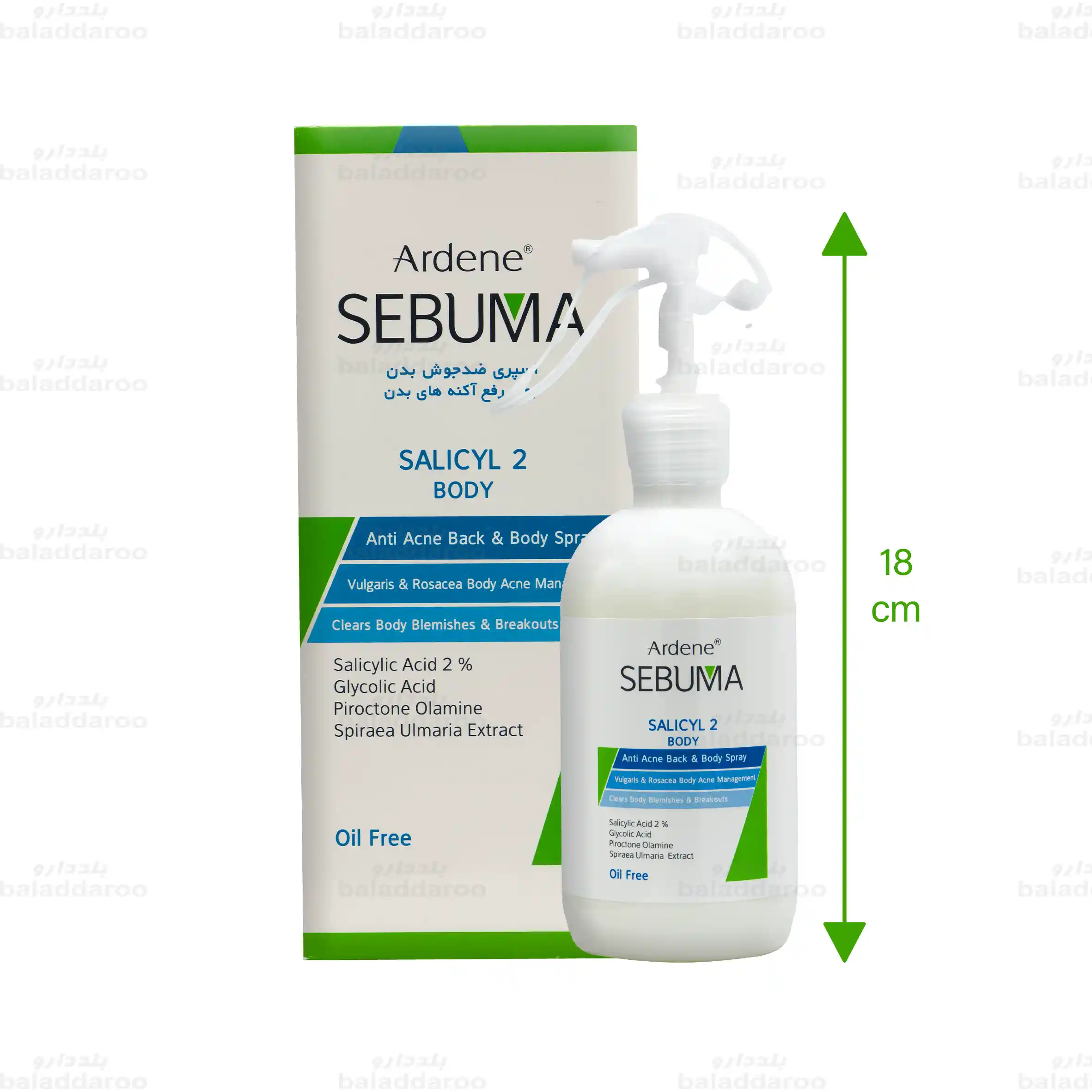 اسپری ضد جوش بدن آردن سبوما حاوی 2 درصد سالیسیلیک اسید است که به رفع و جلوگیری از بروز مجدد جوش روی پوست بدن از جمله بازو، سینه، پشت و گردن و … بدون ایجاد خشکی، خارش و التهاب کمک می کند.