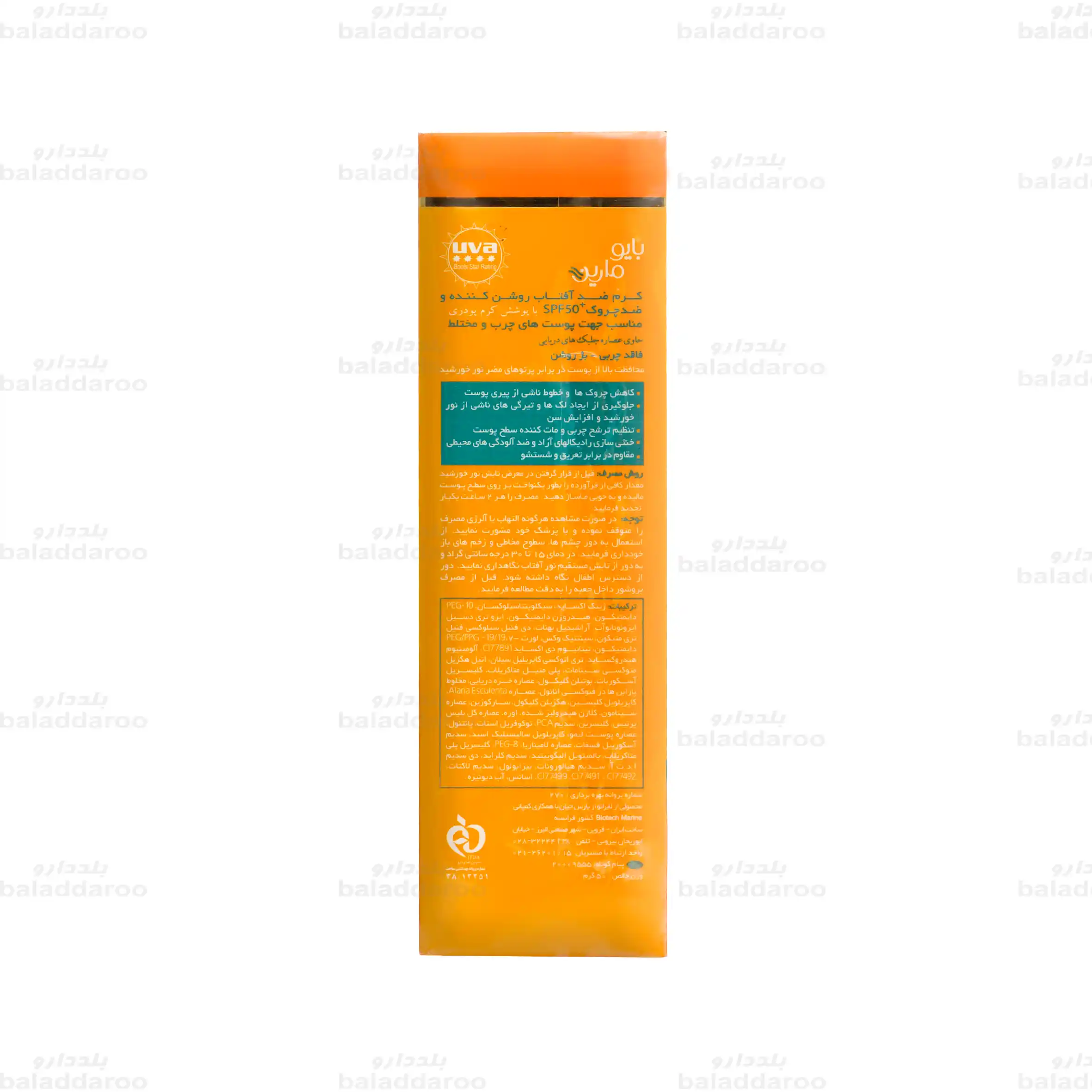 ترکیبات کرم ضد آفتاب روشن کننده و ضد چروک بایومارین پوست چرب