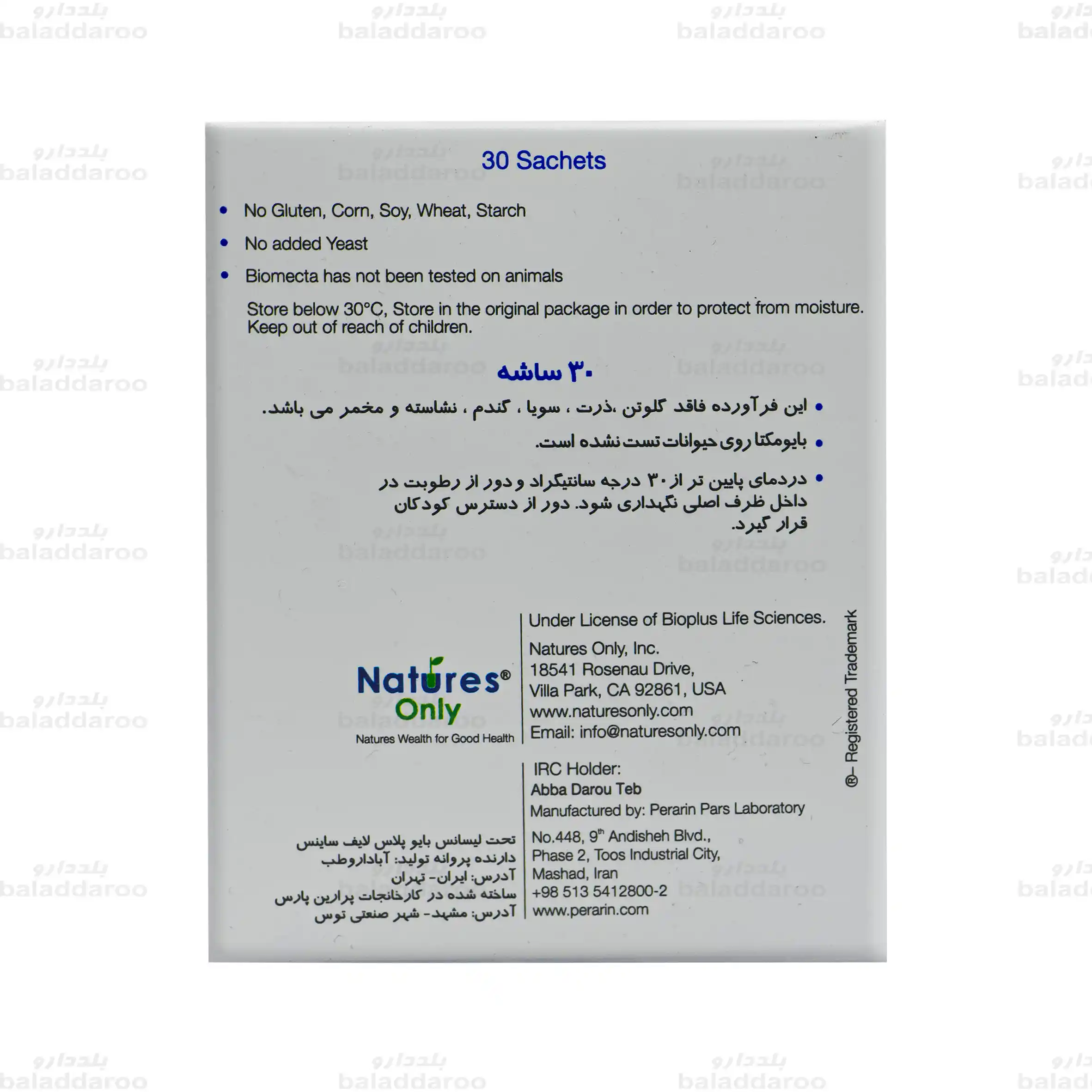 | تحت لیسانس | شرکت بایو پلاس لایف ساینس آمریکا |
