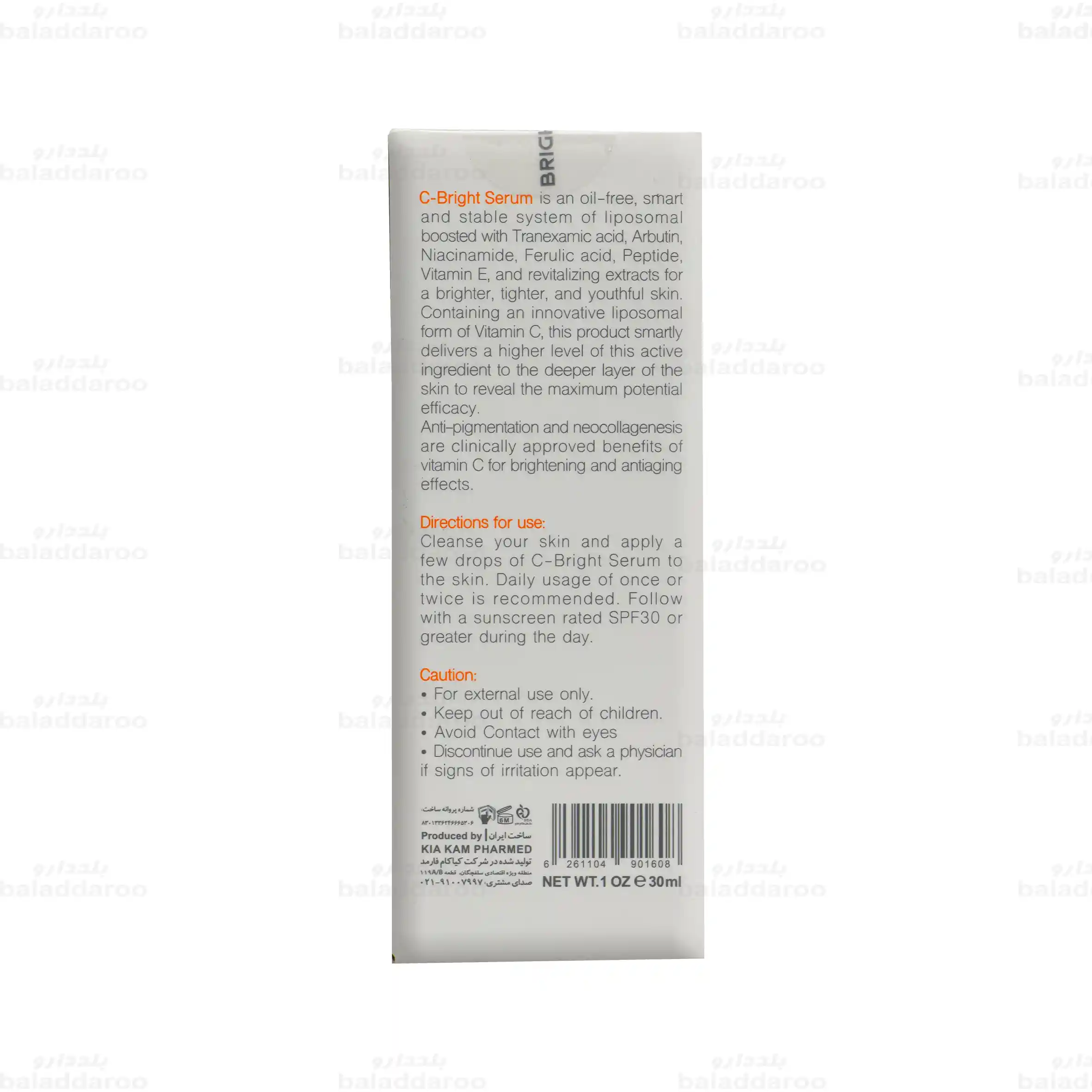 این محصول حاوی ترکیباتی قوی با خواص آنتی اکسیدانی، روشن کنندگی و ضد چروک است به رفع لک و تیرگی های پوست و کاهش چین و چروک کمک می کند. قیمت سرم ویتامین سی برایت مکس در داروخانه آنلاین بلد دارو طبق فاکتورهای رسمی شرکت پخش و تحت نظارت سازمان غذا و دارو مشخص گردیده است.