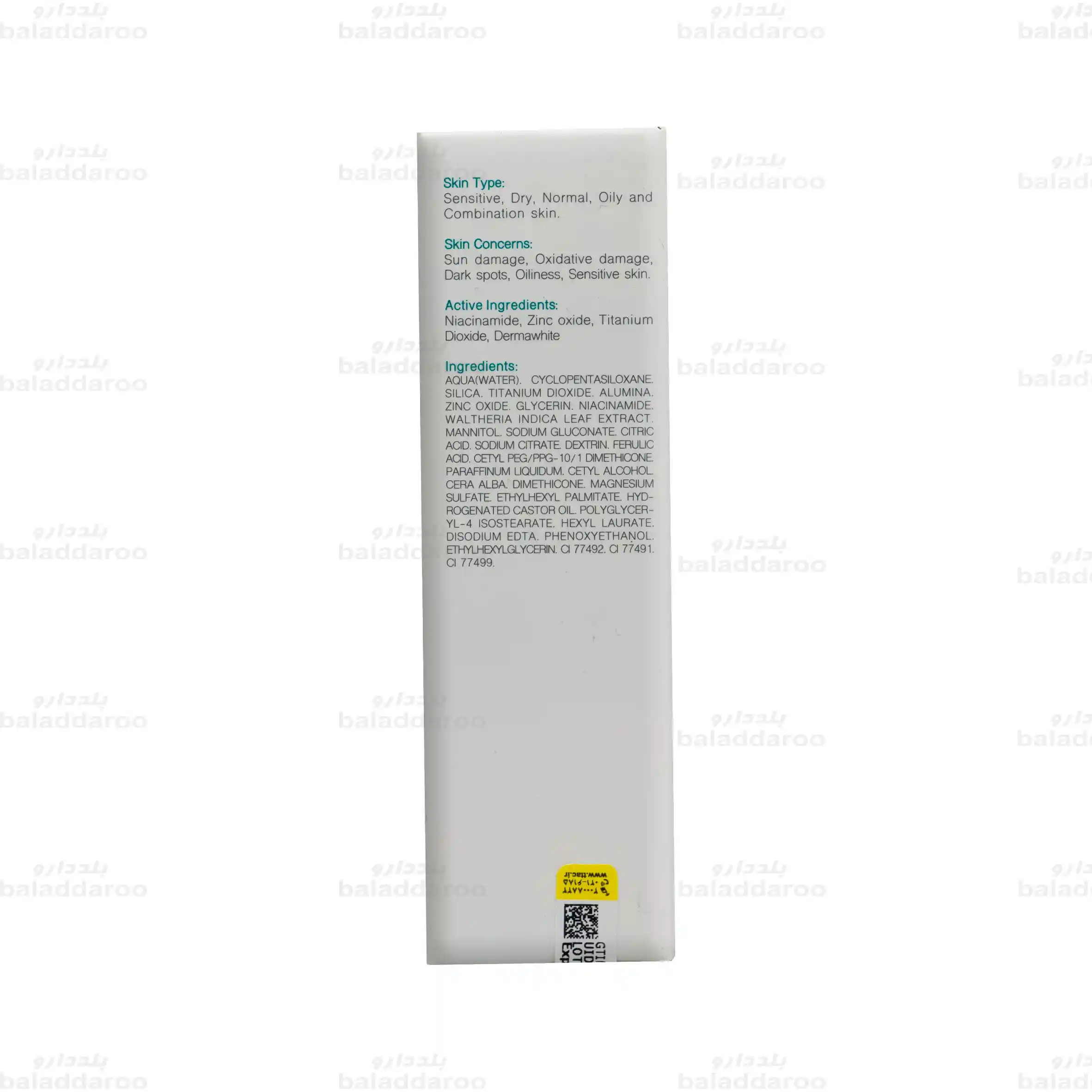 | کارایی | محافظت وسیع الطیف از پوست در برابر اشعه های مضر خورشید، کمک به روشن شدن پوست، موثر در کوچک کردن منافذ |