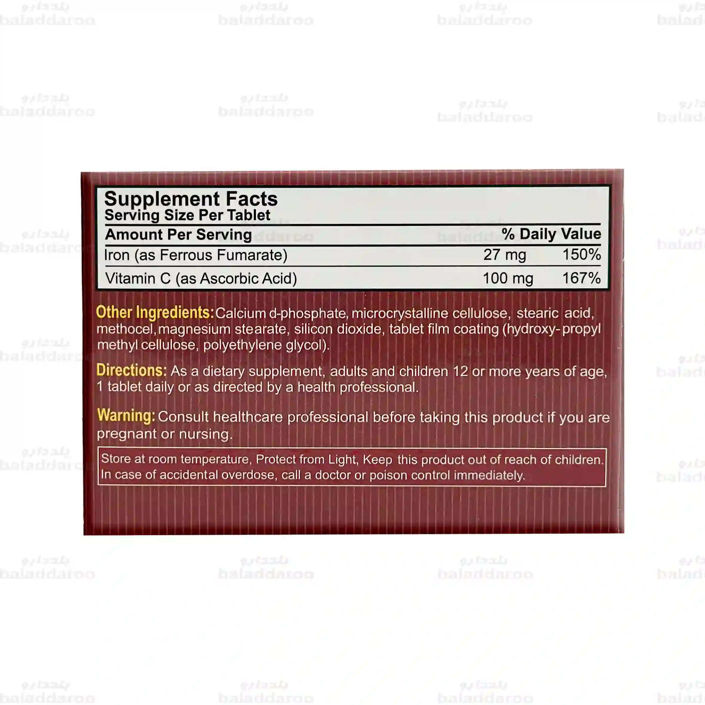 | آهن (به فرم فروس فومارات) | 27 میلی گرم | %150 |