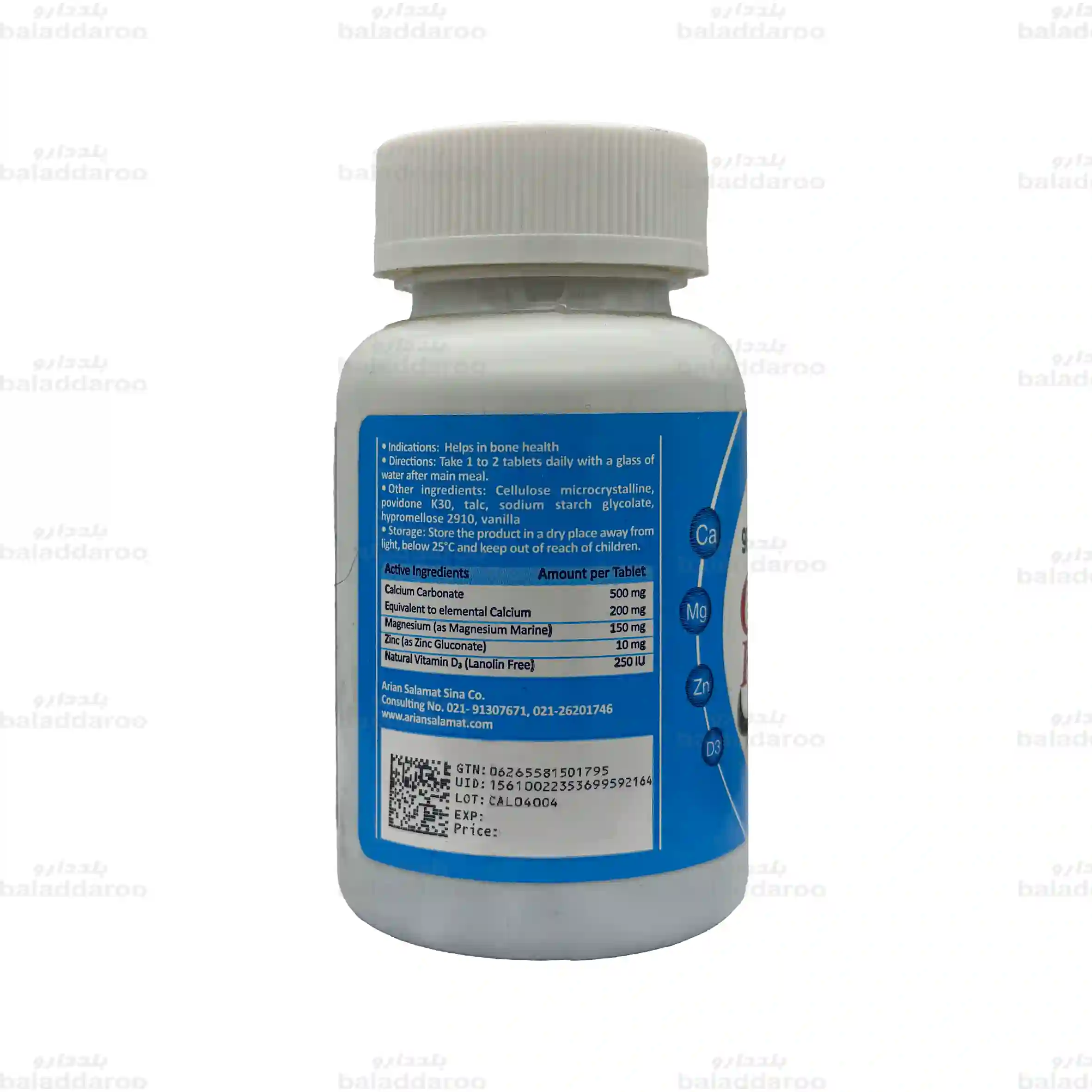 این مکمل حاوی املاح معدنی کلسیم کربنات، منیزیم دریایی، زینک و ویتامین D3 است که علاوه بر حفظ سلامت و استحکام استخوان ها و دندان ها، به افزایش توده استخوانی، تسریع روند ترمیم شکستگی ها و جلوگیری از ابتلا به پوکی استخوان کمک شایانی می کند. همچنین مصرف این مکمل برای زنان باردار، شیرده، زنان در دوران یائسگی و مبتلایان به پوکی استخوان توصیه می شود.