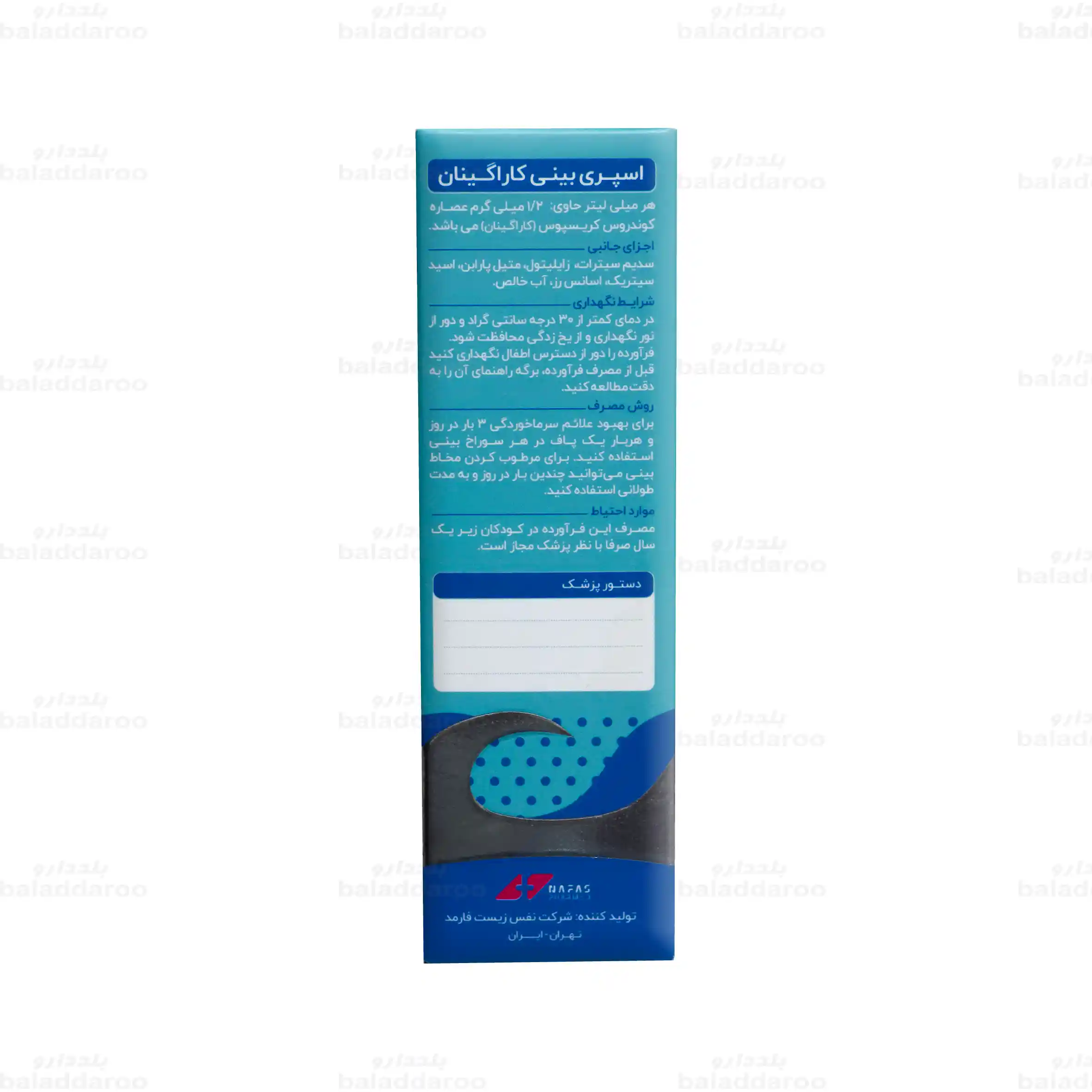 کاراگینان به عنوان ترکیب طبیعی مشتق شده از جلبک دریایی قرمز خاصیت ضد ویروسی دارد. این ماده علاوه بر مرطوب کردن و حفظ رطوبت مجاری بینی، در درمان و پیشگیری از ابتلا به عفونت های ویروسی دستگاه تنفس فوقانی موثر است. این ماده یک غشای مرطوب روی مخاط بینی ایجاد می کند و از تکثیر و انتشار ویروس ها جلوگیری می کند. این فرآورده بیش از 90 درصد از ویروس های عامل سرماخوردگی و آنفولانزا را از بین می برد و می تواند سبب کاهش طول دوره سرماخوردگی و تسریع روند بهبودی گردد.