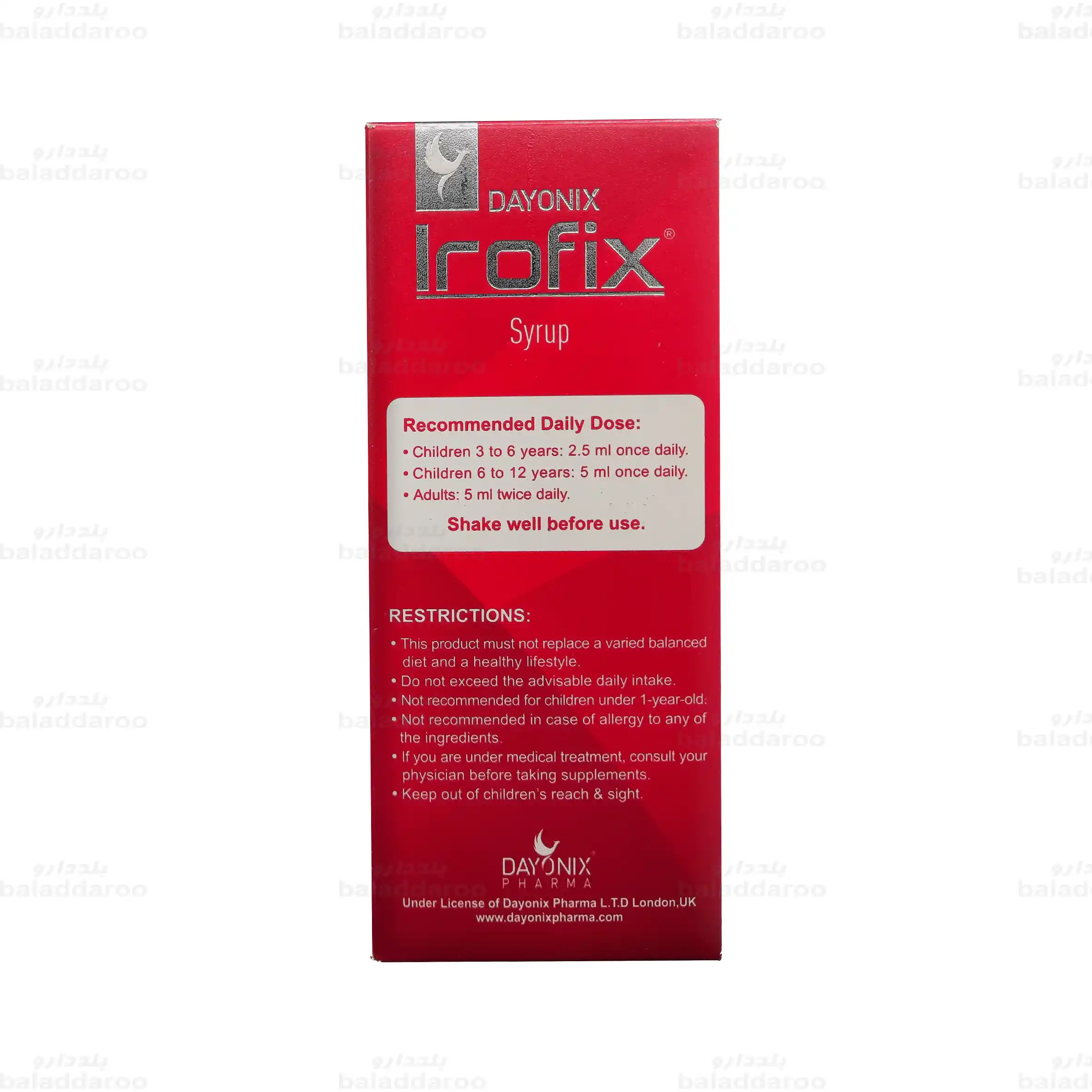 این محصول تحت لیسانس دایونیکس فارما انگلستان متشکل از آهن لیپوزومال، ویتامین B6 و ویتامین B12 است. شربت آیروفیکس دایونیکس مناسب برای افراد بالای 3 است و در صورتی که سن کودک شما از 3 سال کمتر است، می توانید از قطره آیروفیکس استفاده نمایید.