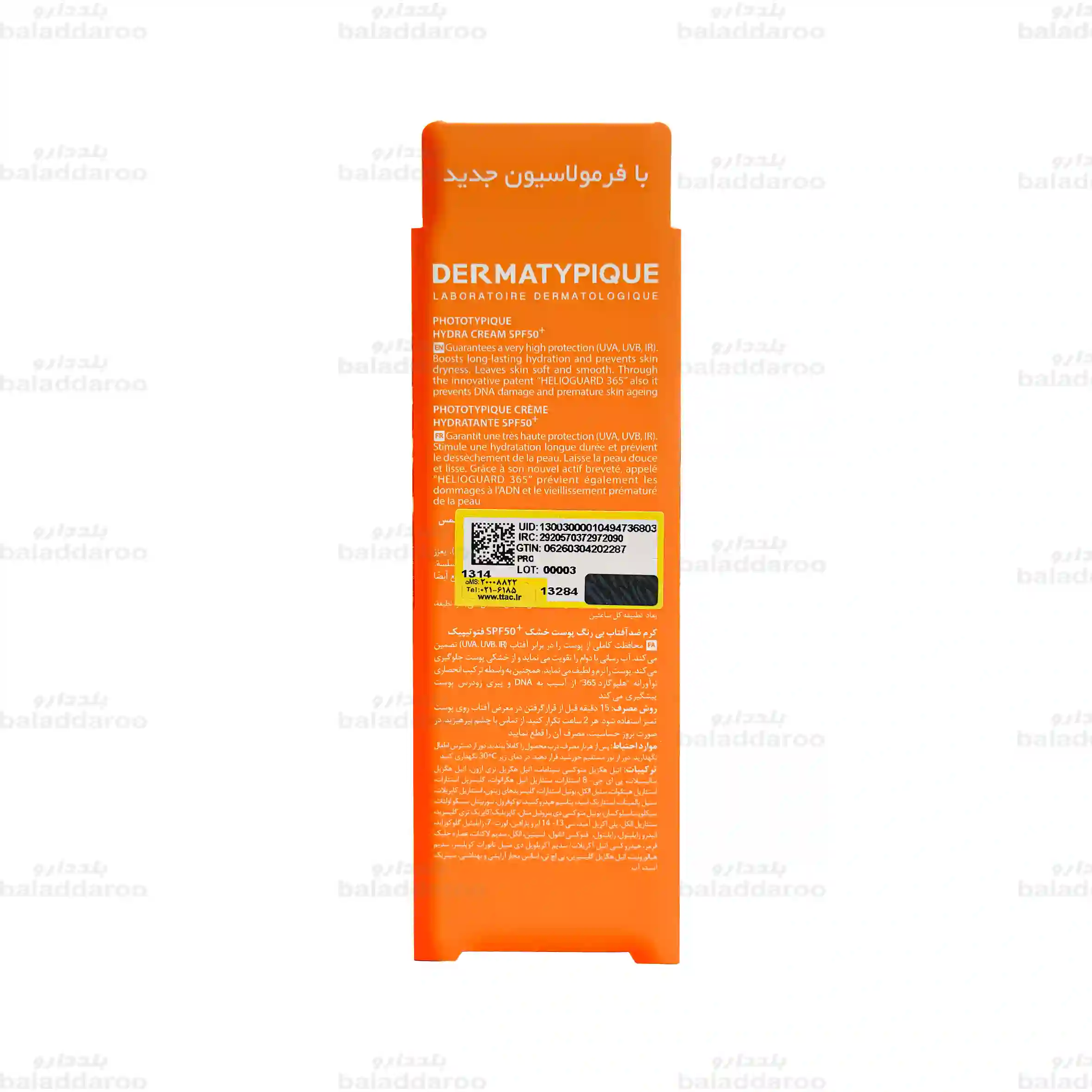 ضد آفتاب بی رنگ فتوتیپیک درماتیپیک پوست خشک SPF50 حجم 50 میلی لیتر