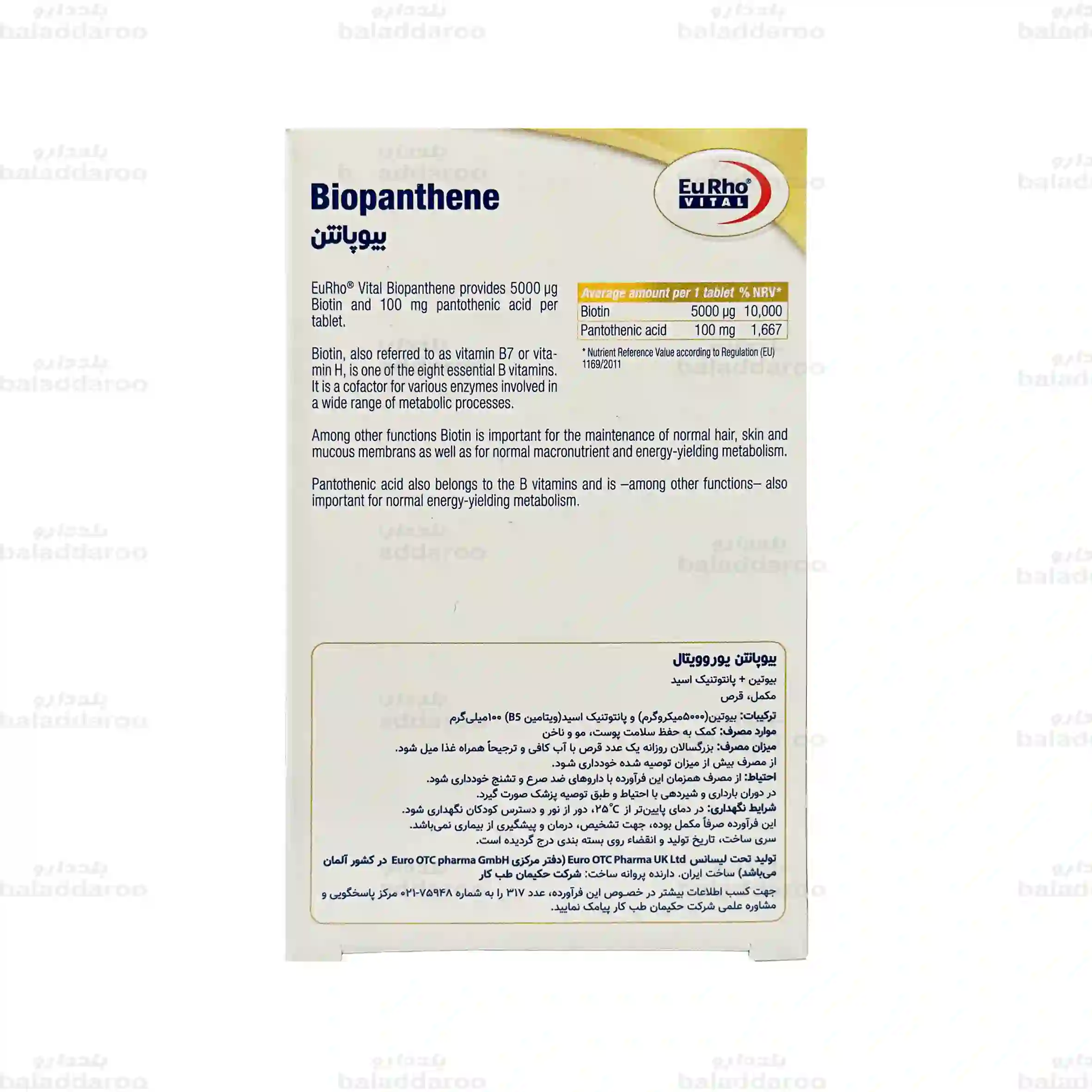 جدول ترکیبات قرص بیوپانتن یوروویتال