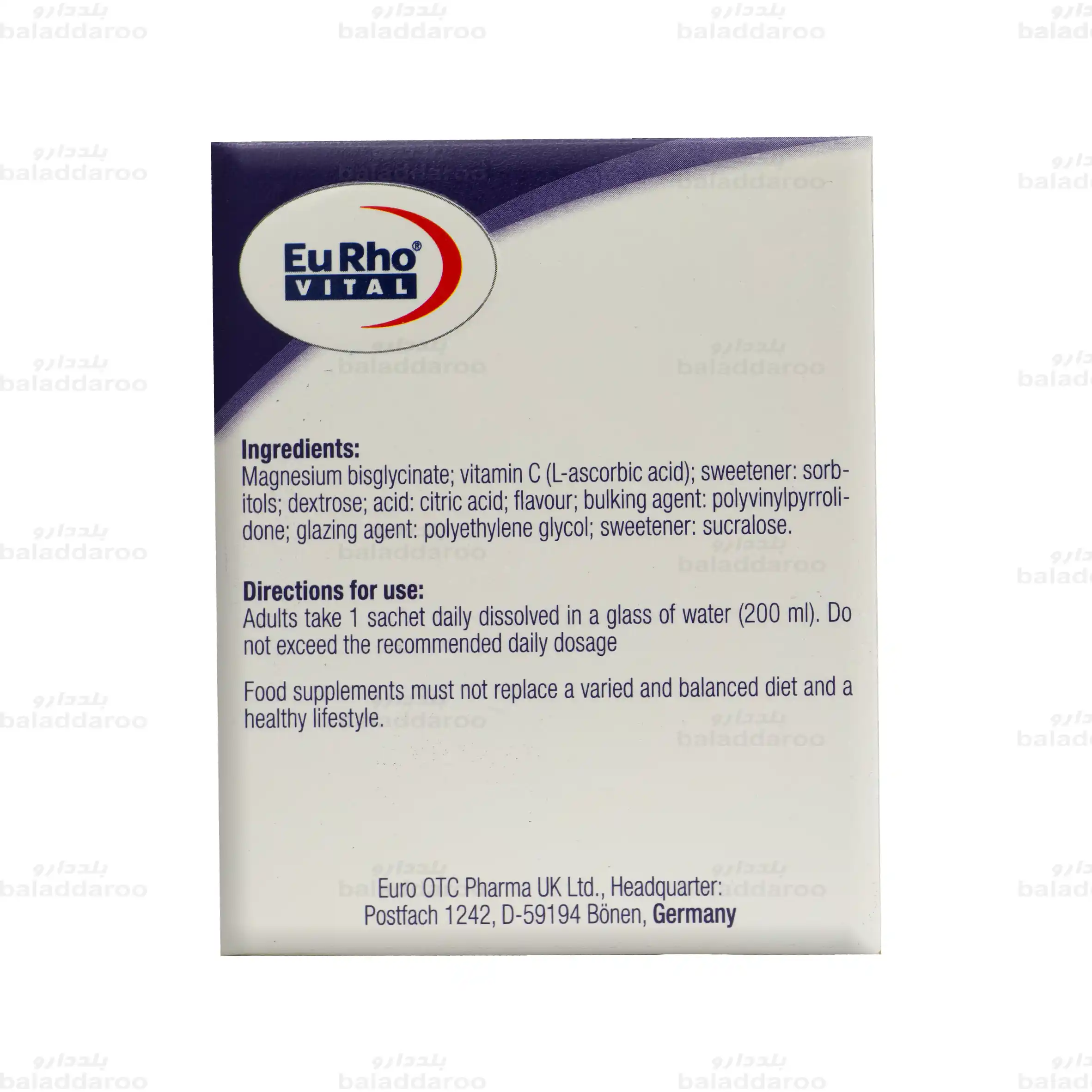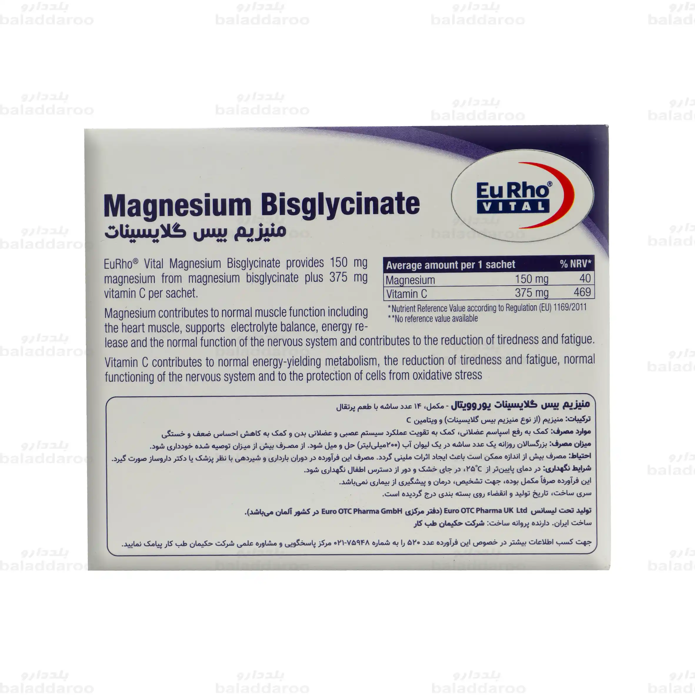 برای خرید ساشه منیزیم بیس گلایسینات یوروویتال، به سایت داروخانه آنلاین بلد دارو مراجعه کنید. این داروخانه با ارائه محصولاتی با ضمانت اصالت، تاریخ انقضای معتبر و قیمت مصوب، آماده خدمت رسانی به شما کاربران گرامی است.
