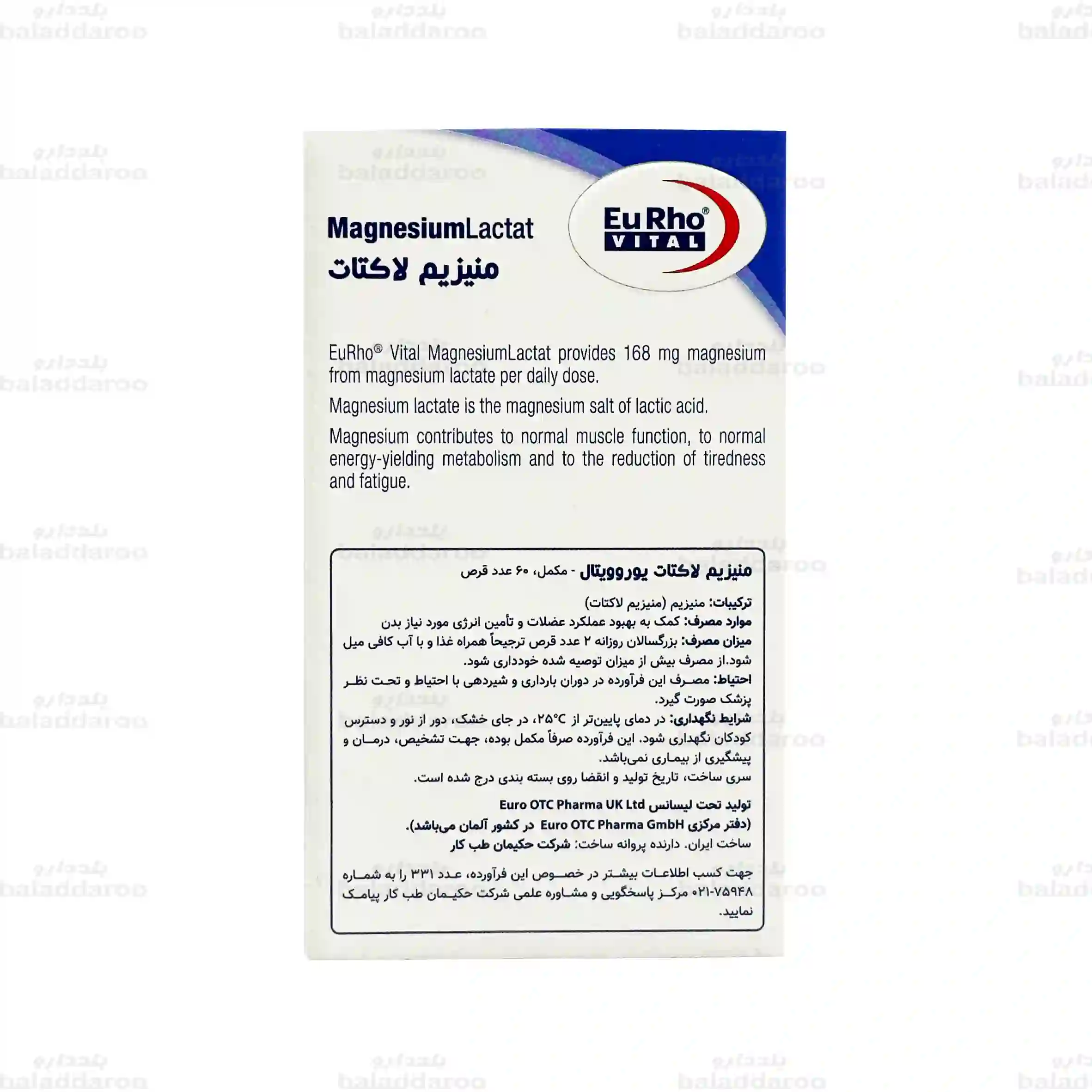 قرص منیزیم لاکتات یوروویتال 60 عدد