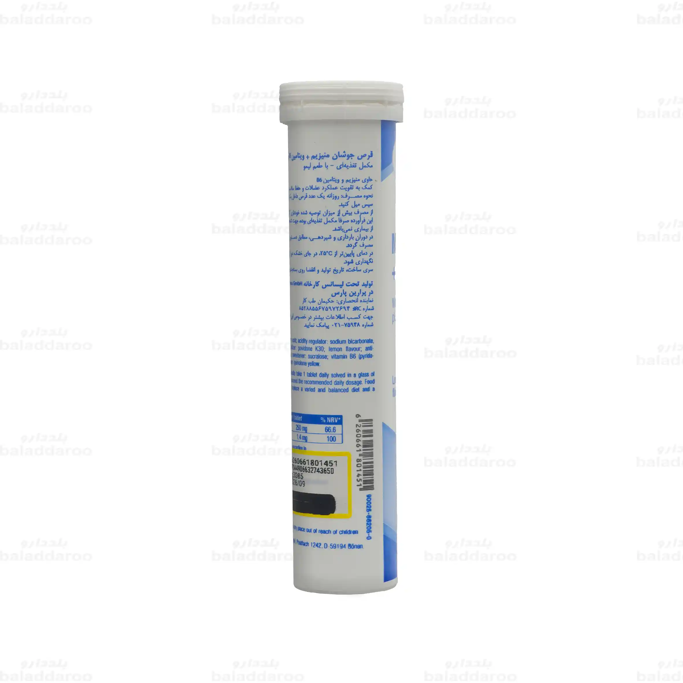 این مکمل مقادیر قابل توجهی از منیزیم و ویتامین B6 مورد نیاز بدن را تامین می کند. به علاوه از گرفتگی عضلات در افراد خصوصا ورزشکاران جلوگیری و به سلامت سیستم عصبی و کنترل علائم پی ام اس کمک می کند. این فرآورده توسط شرکت حکیمان طب کار، در بسته های 20 عددی و طعم لیمویی عرضه می شود.