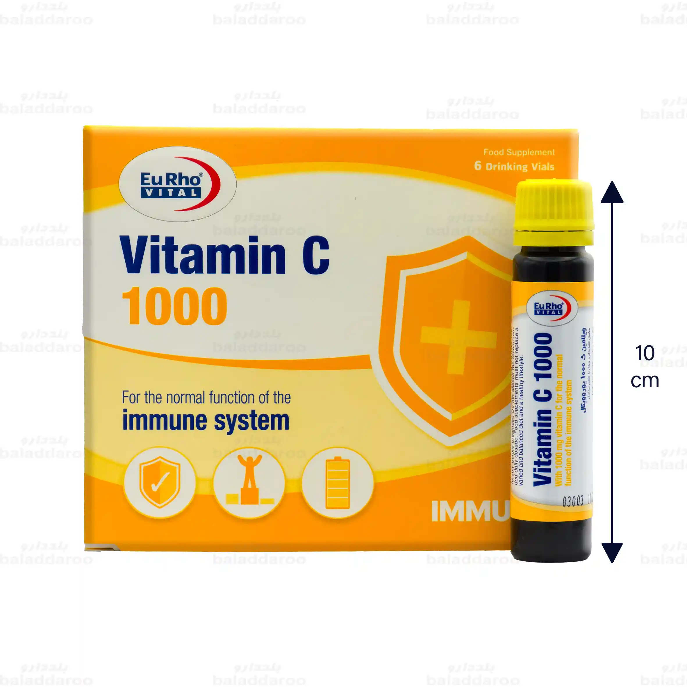 ویال ویتامین سی یوروویتال حاوی 1000 میلی گرم ویتامین C است که در تقویت سیستم ایمنی نقش بسزایی دارد. این مکمل دارای خواص آنتی اکسیدانی بوده و به تحریک کلاژن سازی، حفظ سلامت پوست و افزایش جذب آهن کمک می کند. آمپول خوراکی ویتامین سی یوروویتال تحت لیسانس آلمان در بسته های 6 عددی توسط شرکت حکیمان طب کار تهیه و تولید می شود.