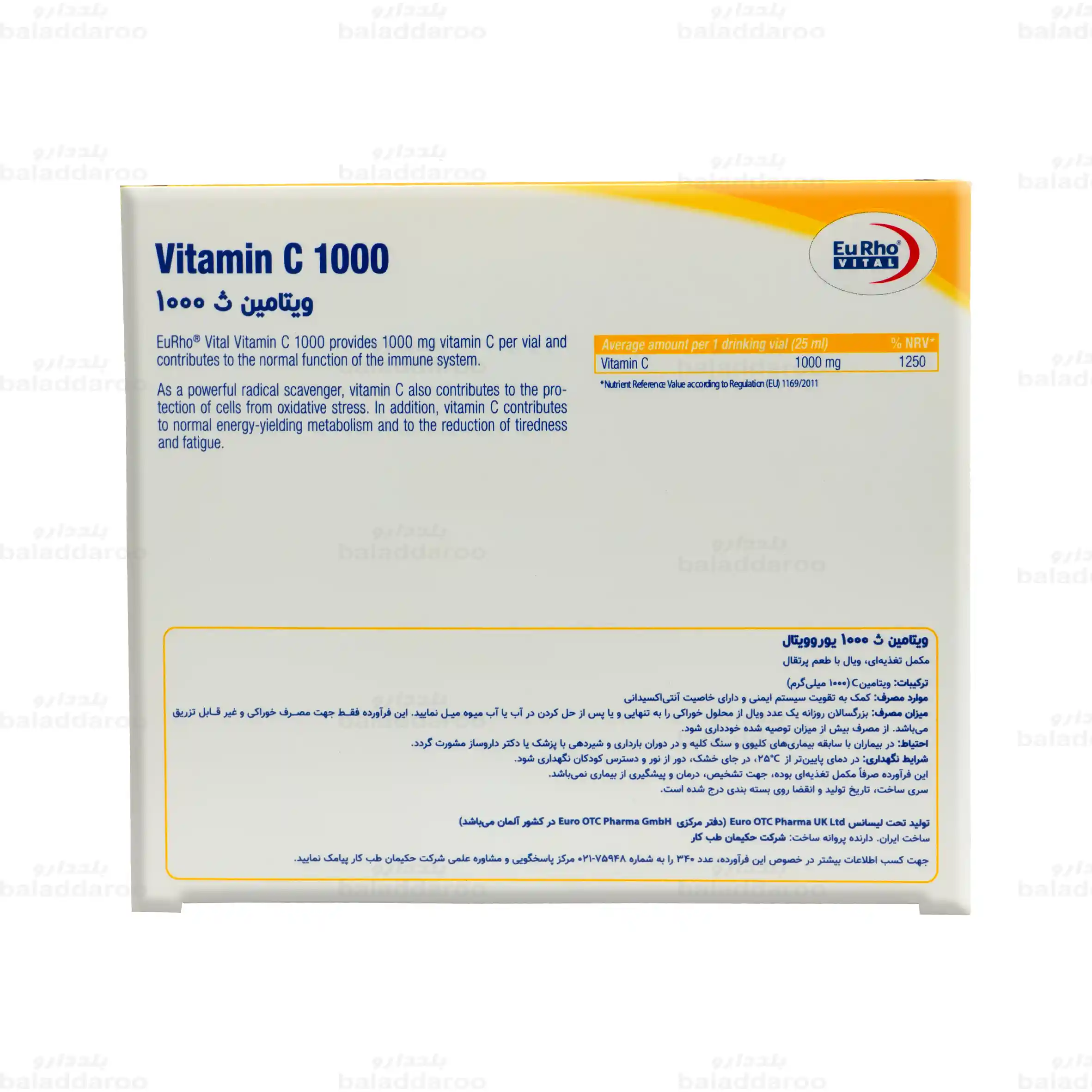 ویال ویتامین سی 1000 یوروویتال در یک نگاه: