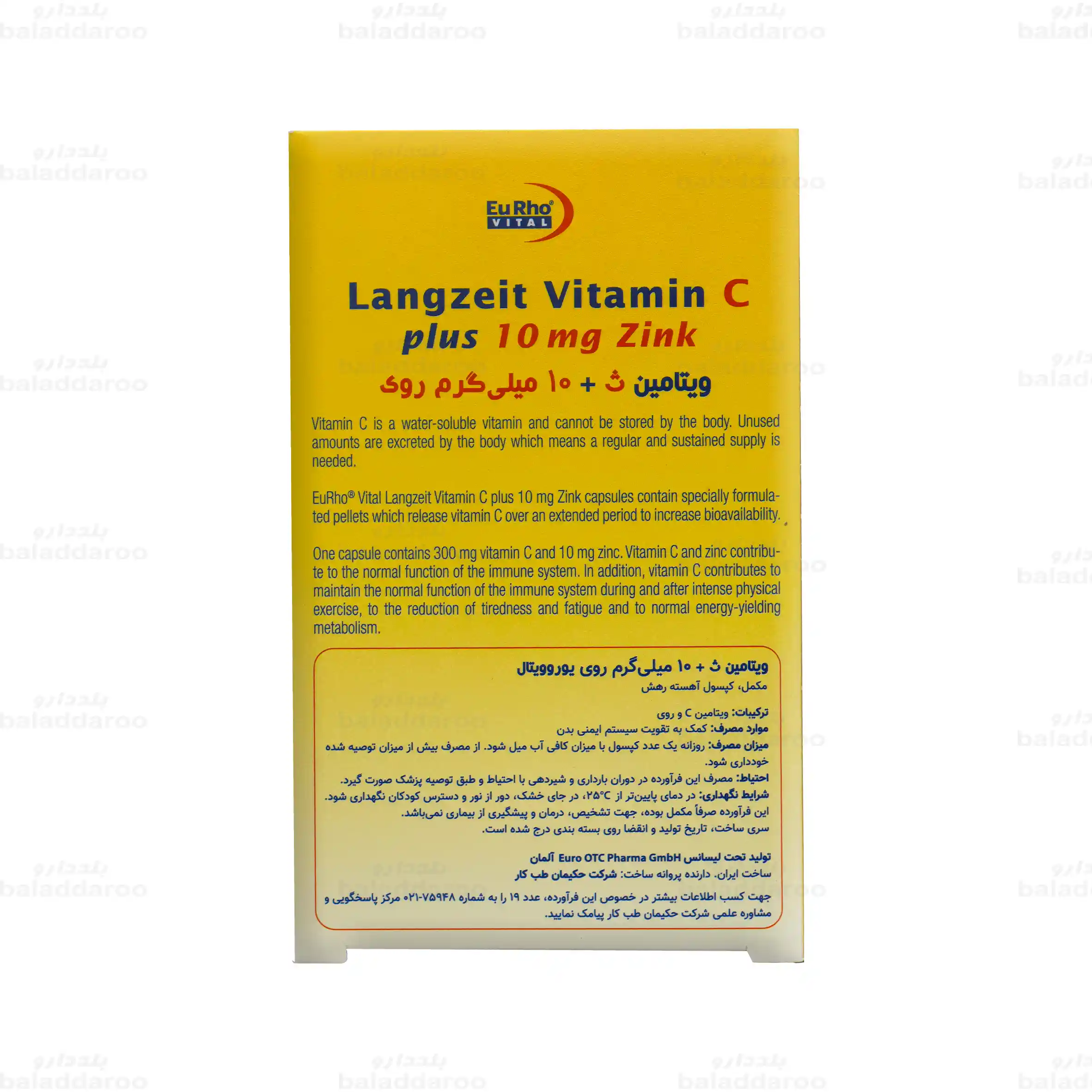 کپسول ویتامین سی و زینک 10 میلی گرم یوروویتال