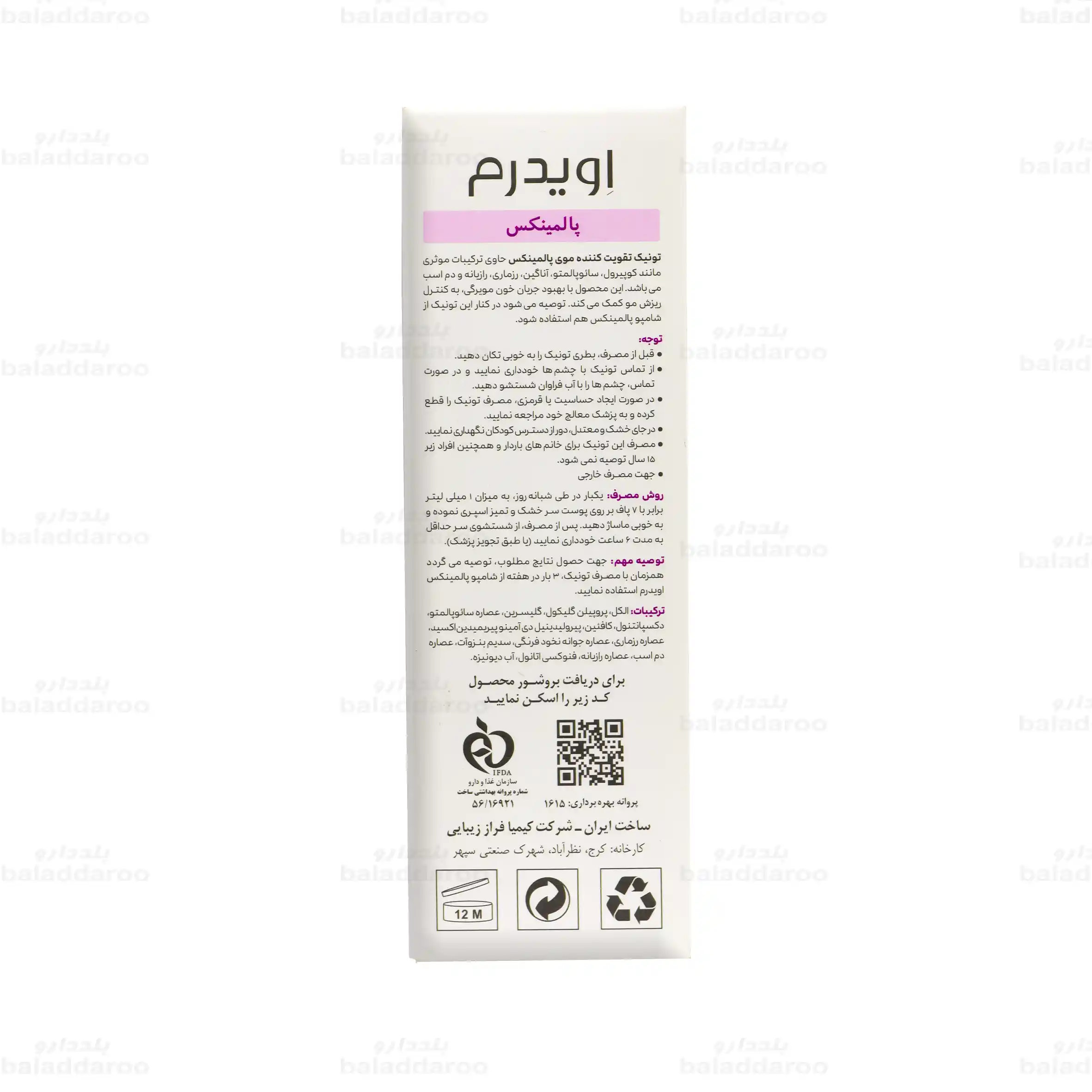 احتیاط های تونیک ضد ریزش اویدرم پالمینکس