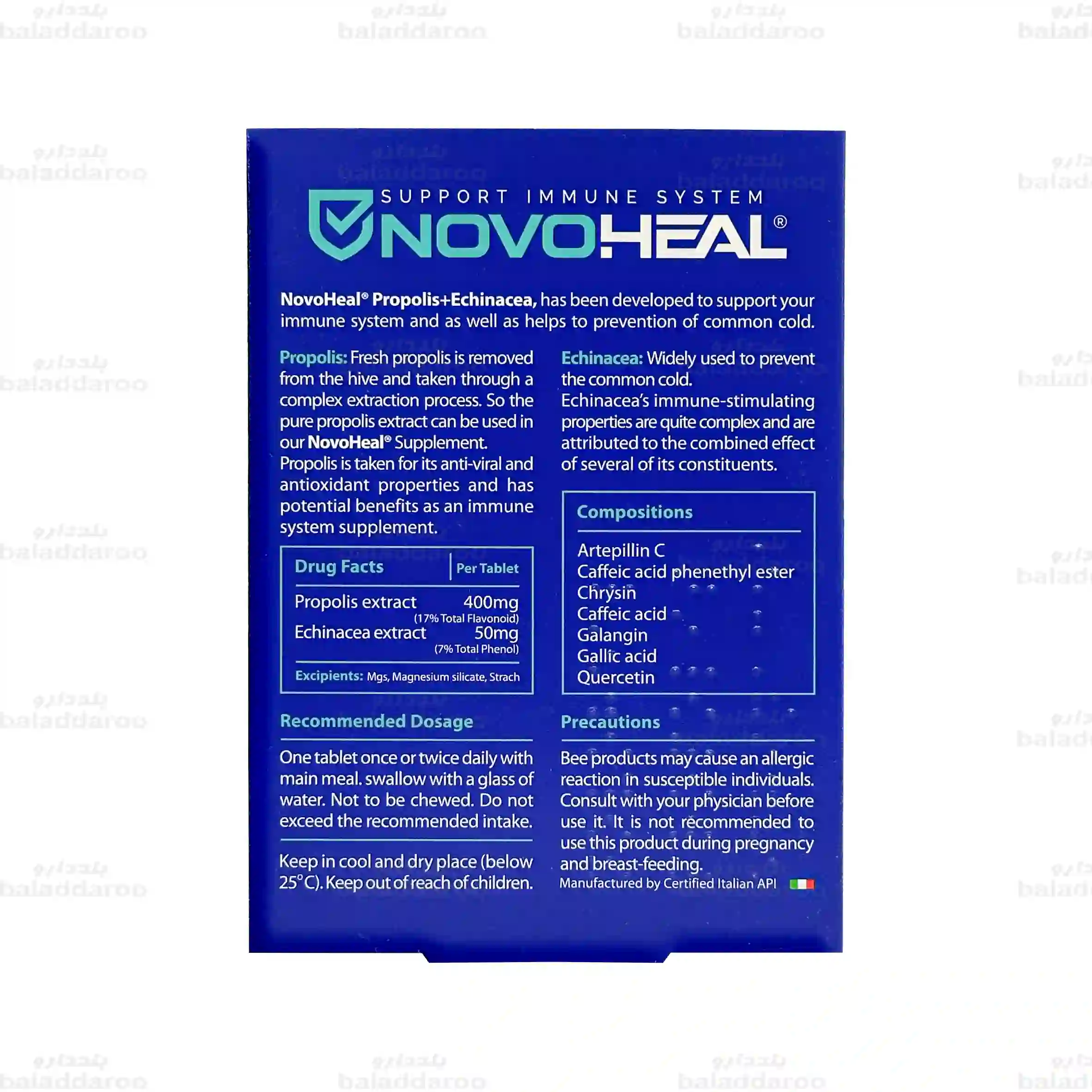 قرص نووهیل حاوی دو ماده موثره شناخته شده، پروپولیس و اکیناسه است. هر قرص شامل 400 میلی گرم عصاره پروپولیس و 50 میلی گرم عصاره اکیناسه می باشد که علاوه بر تقویت سیستم ایمنی، به کاهش التهاب و مقابله با عوامل عفونی نیز کمک می کند.