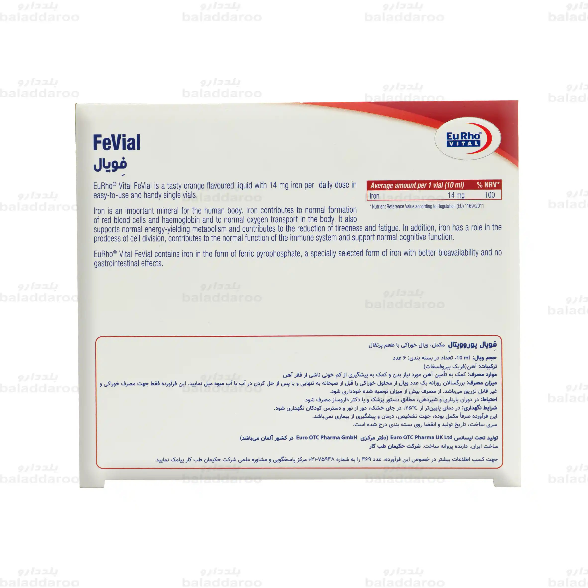 این مکمل با تامین آهن مورد نیاز بدن، به جلوگیری و رفع کم خونی ناشی از فقر آهن و علائم ناشی از آن کمک می کند. قیمت تمامی محصولات موجود در داروخانه آنلاین بلد دارو از جمله قیمت ویال فویال طبق فاکتورهای رسمی شرکت پخش و تحت نظارت سازمان غذا و دارو تعیین می گردد.