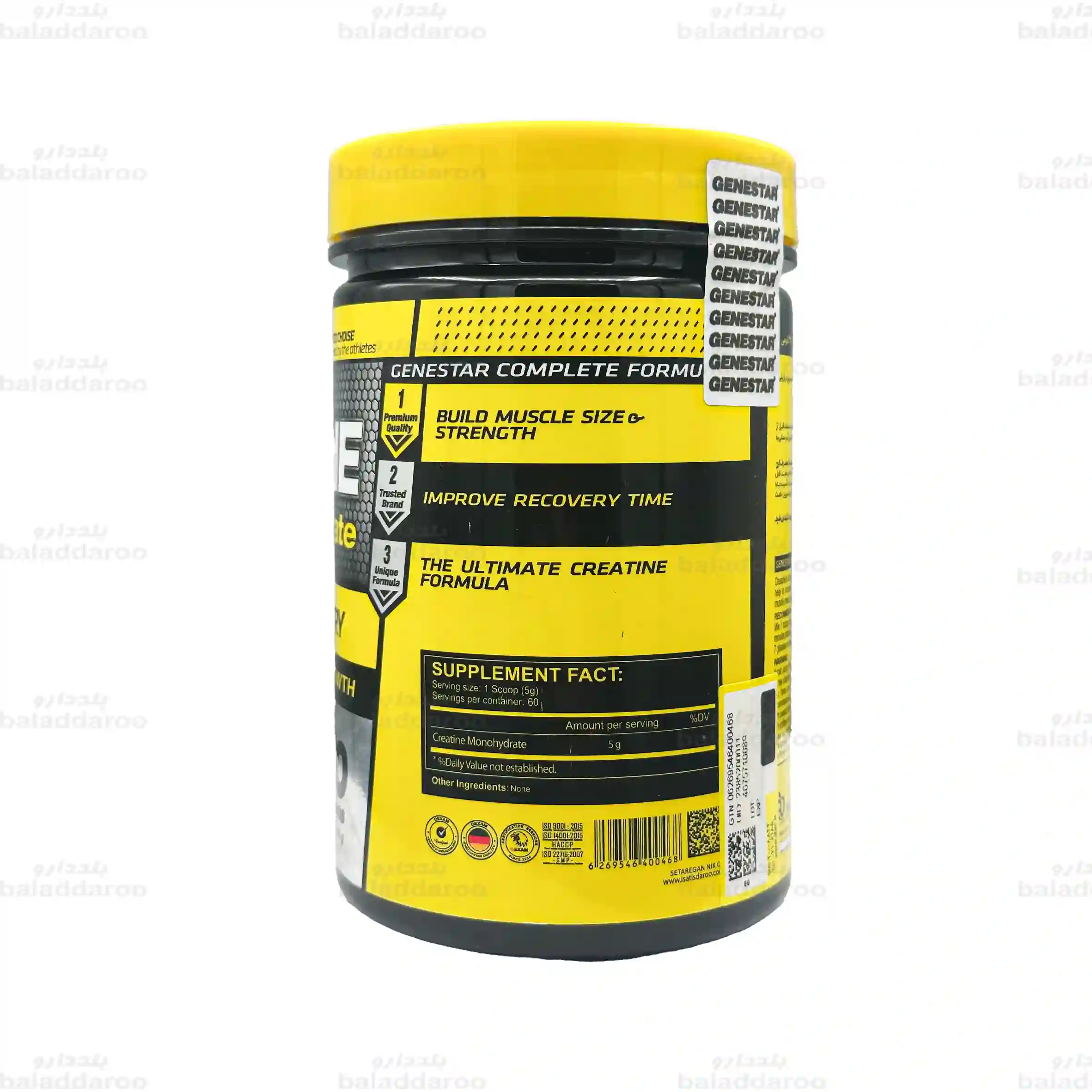 پودر کراتین مونوهیدرات ژن استار به رشد عضلات بدون چربی، تسریع روند ریکاوری و افزایش حجم و قدرت عضلات کمک می کند.