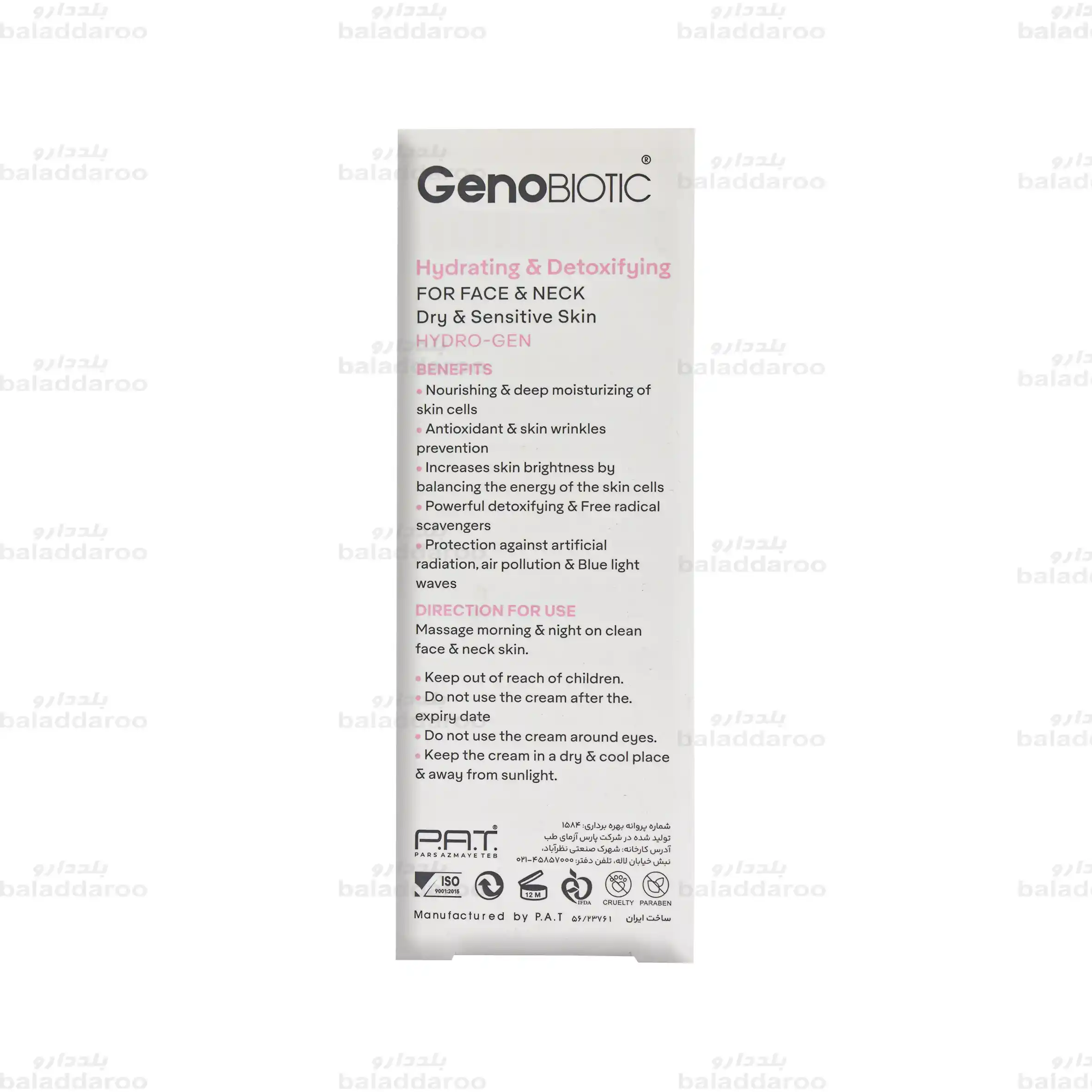 کرم رطوبت رسان و دتوکسیفای کننده صورت و گردن ژنوبایوتیک پوست خشک و حساس 50 میلی لیتر