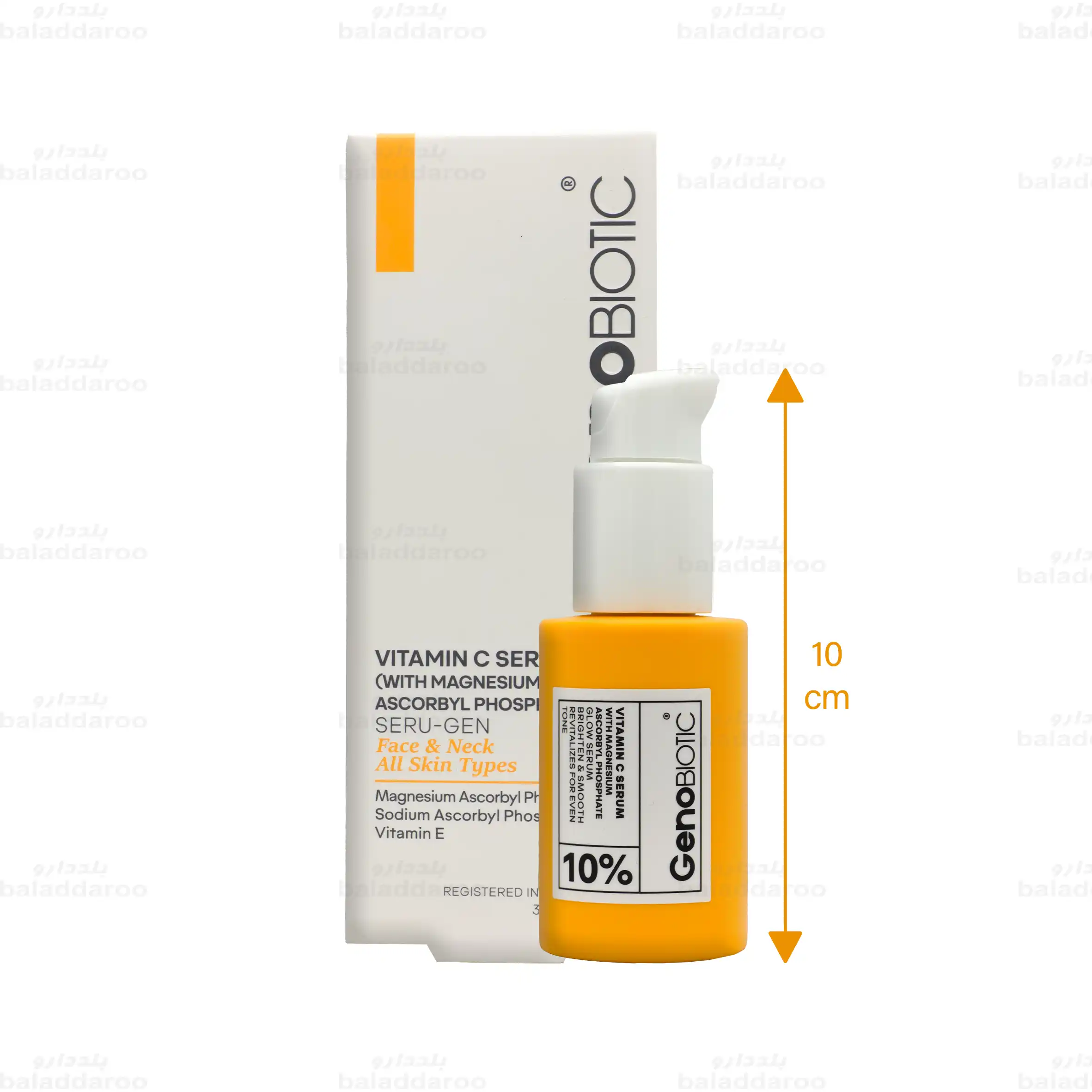 سرم ویتامین c منیزیم آسکوربیل فسفات ژنوبایوتیک، با خنثی سازی رادیکال های مضر سبب یکنواخت سازی رنگ و کاهش تیرگی پوست می شود. همچنین با تحریک سنتز کلاژن، به کاهش چین و چروک، روشن سازی پوست و کاهش لک های تیره کمک کرده و سبب یکنواخت شدن رنگ پوست می شود.
