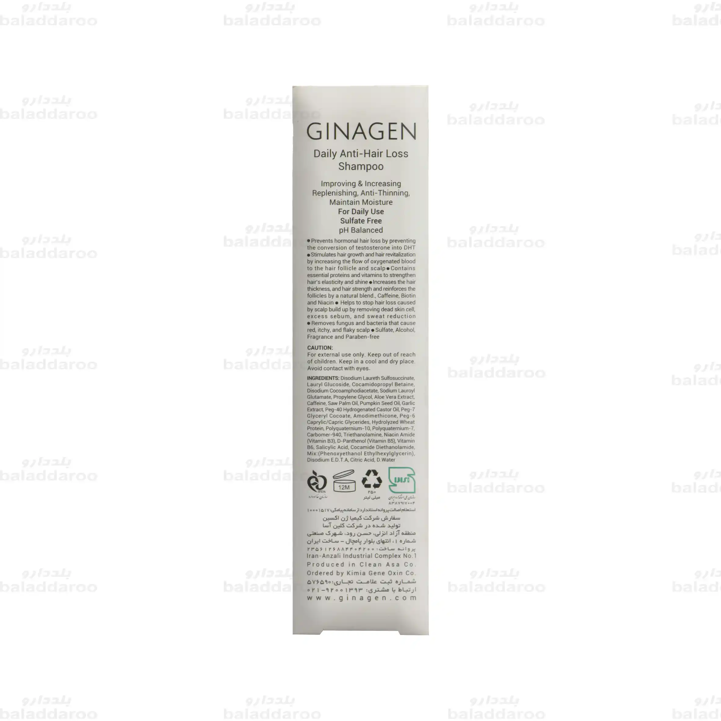 اگر قصد خرید اینترنتی شامپو ضد ریزش ژیناژن را دارید، اولین قدم اطمینان از معتبر بودن فروشگاه است. داروخانه آنلاین بلد دارو، مورد تایید سازمان غذا و دارو، این اطمینان را به شما میدهد که محصولات سلامت محور و غیر دارویی برندهای محبوب ایرانی، با اصالت و کیفیت تضمین شده و با قیمت مناسب و تخفیفات ویژه عرضه می شوند.