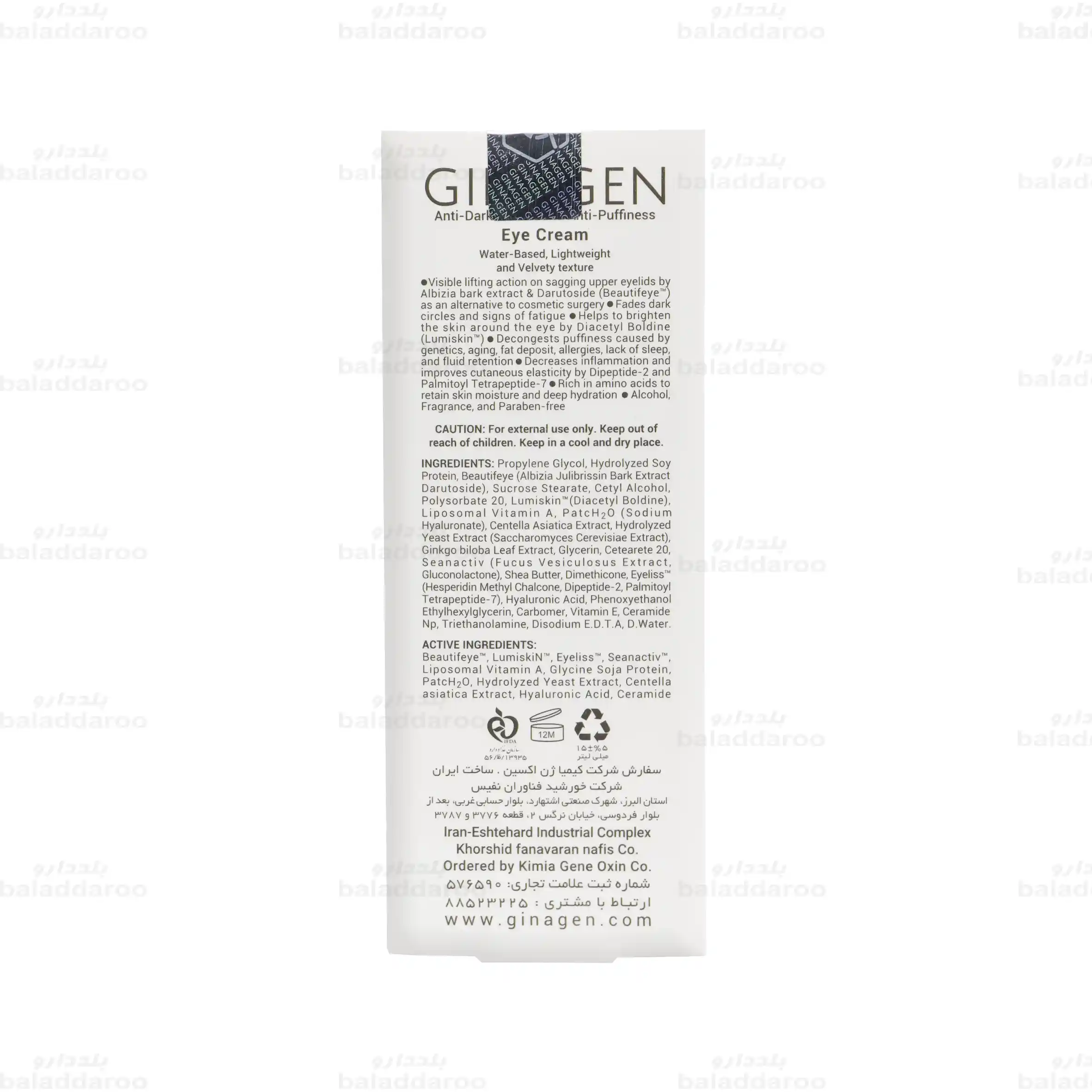 کرم رفع پف و تیرگی دور چشم ژیناژن 15 میلی لیتر