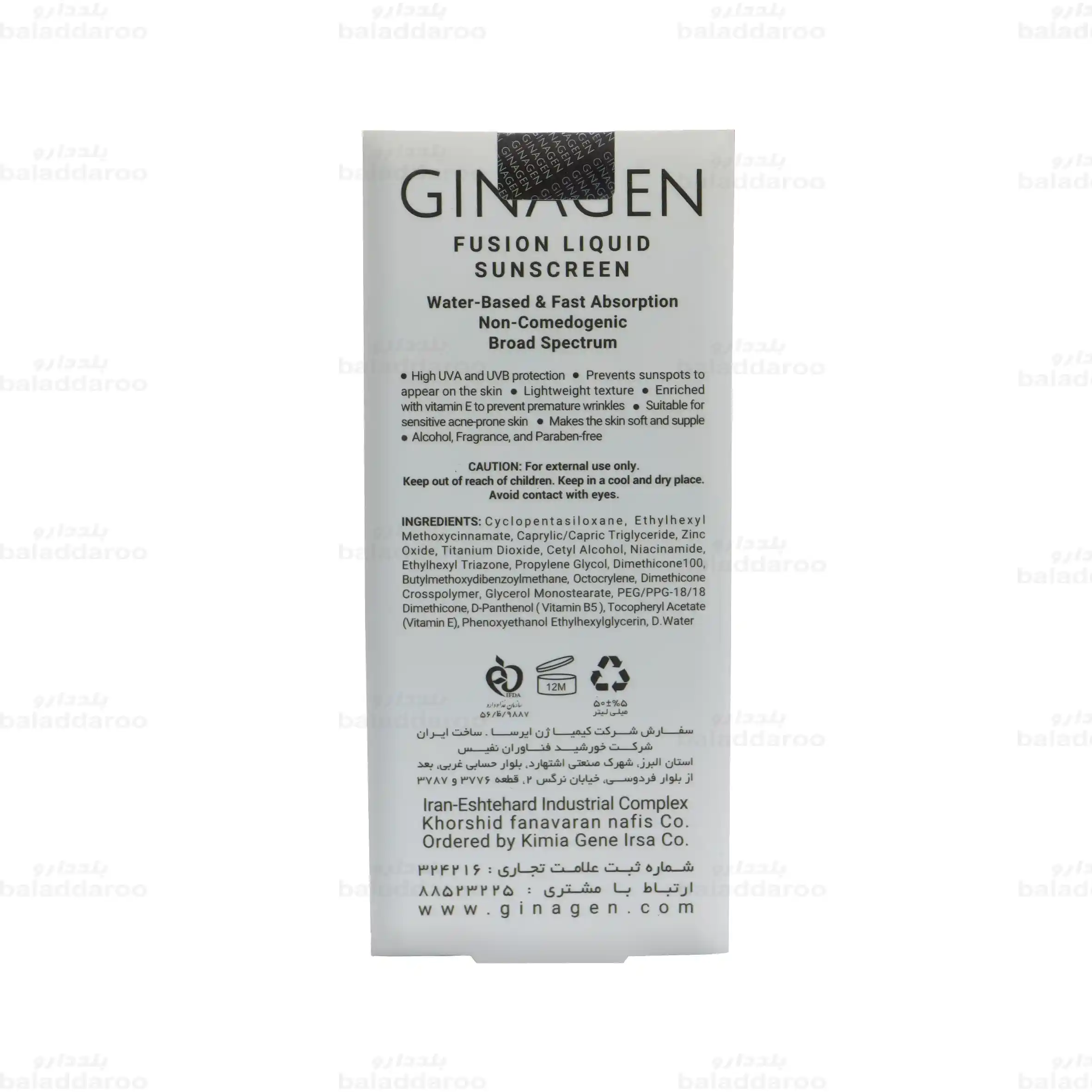بلد دارو به عنوان یکی از معتبرترین داروخانه های آنلاین، امکان خرید لیکوئید ضد آفتاب بی رنگ ژیناژن پوست چرب و مختلط را به صورت کاملا آسان و مطمئن برای شما فراهم کرده است. این مجموعه با عرضه محصولاتی با کیفیت و مقرون به صرفه، همواره در تلاش است تا تجربه ای رضایت بخش از خرید اینترنتی را برای مشتریان خود رقم بزند.