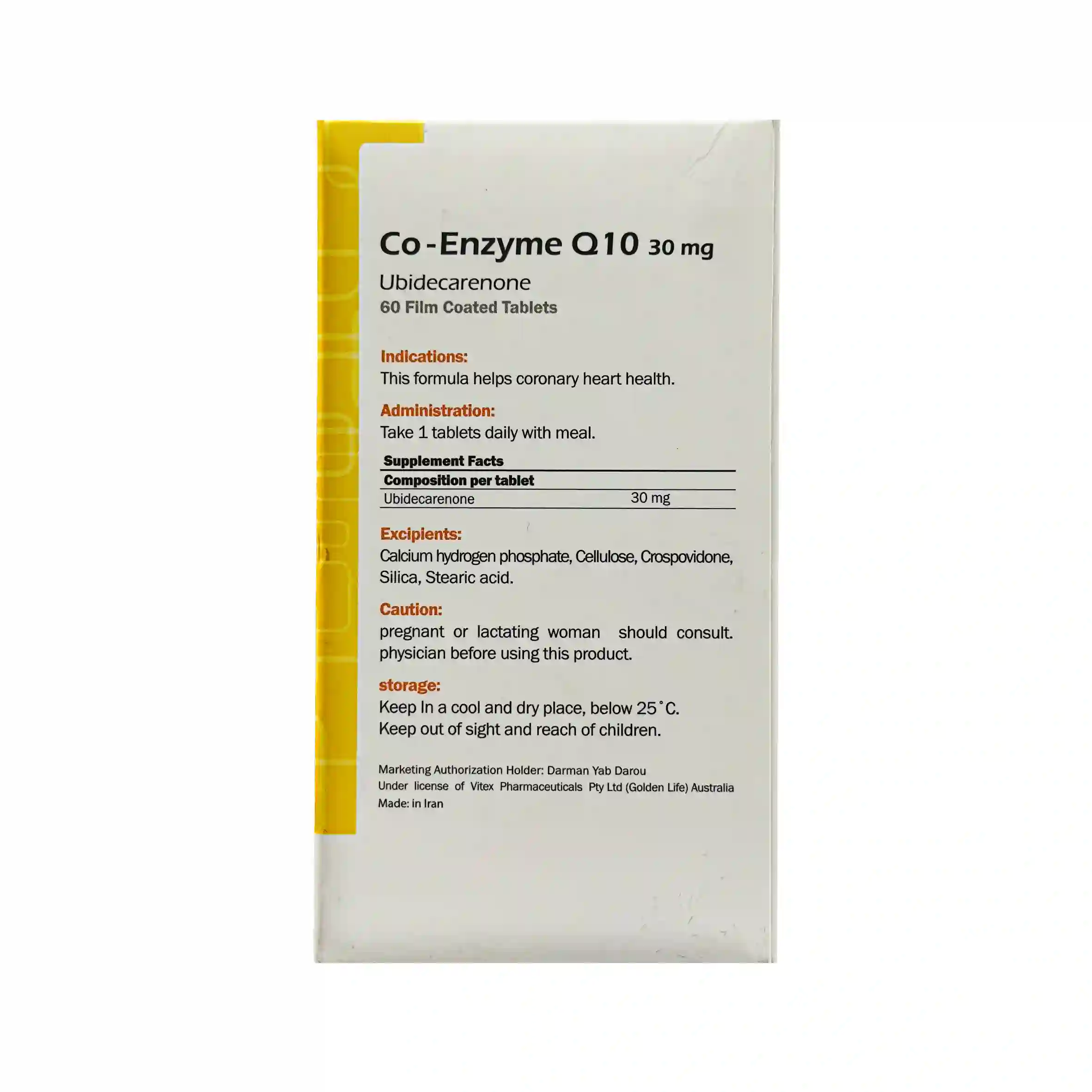 قرص کوآنزیم کیوتن 30 میلی گرم گلدن لایف 60 عدد