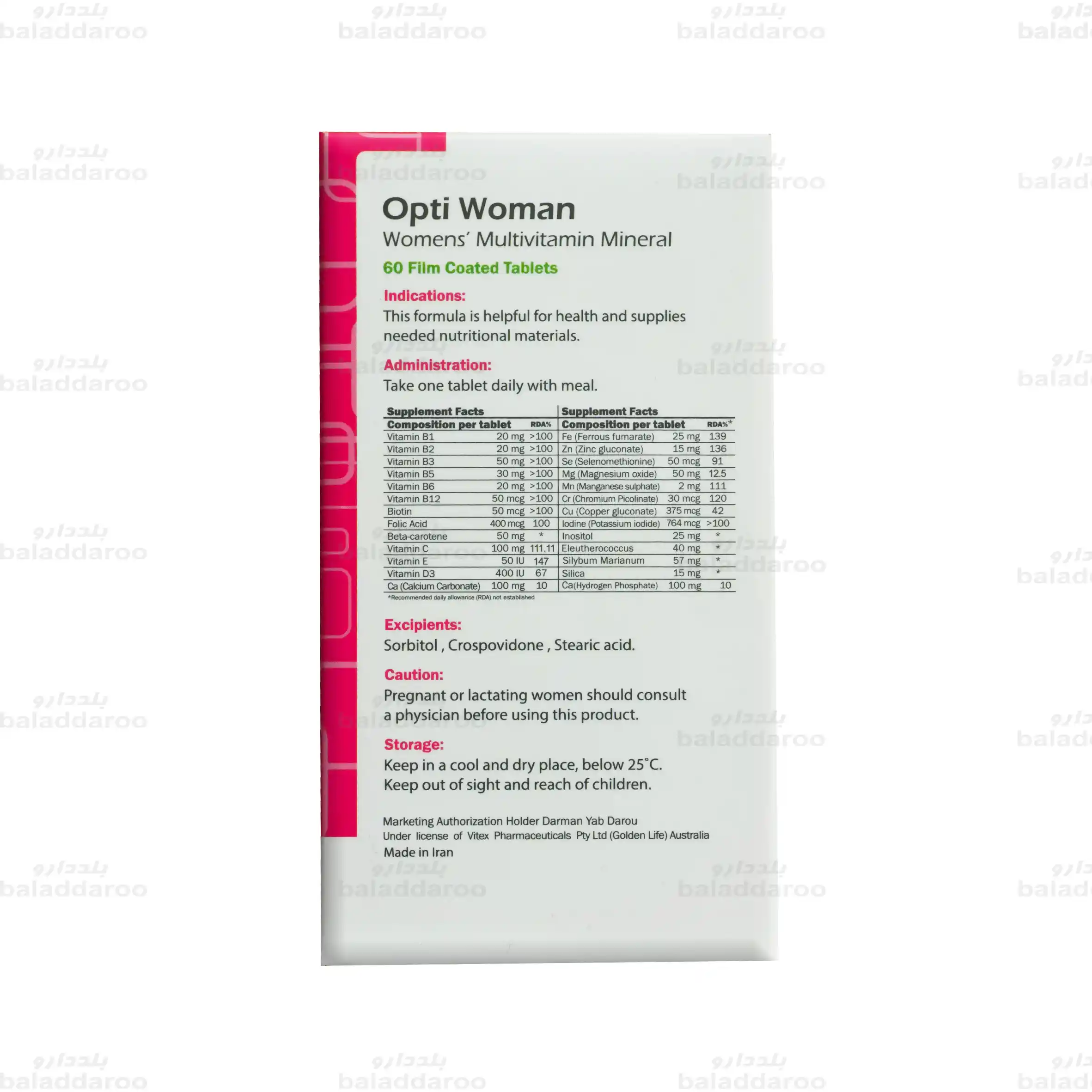 ترکیبات قرص مولتی ویتامین اپتی وومن