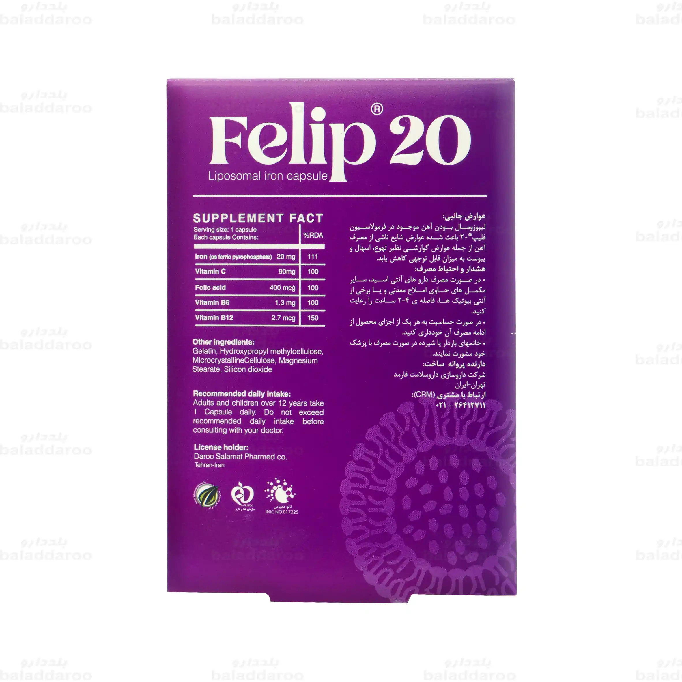 کپسول فلیپ 20 های هلث یک مکمل تخصصی برای پیشگیری و درمان کم خونی ناشی از فقر آهن است. این محصول حاوی 20 میلی گرم آهن لیپوزومال با جذب بالا می باشد که نقش موثری در تولید گلبول های قرمز و اکسیژن رسانی به بافت های بدن دارد. همچنین فرم لیپوزومال آن از بروز عوارض گوارشی مانند تهوع، یبوست و دل درد جلوگیری می کند. وجود ویتامین C در فلیپ 20 باعث افزایش جذب آهن و تقویت سیستم ایمنی و سطح انرژی بدن می شود. علاوه بر این، فولیک اسید موجود در این مکمل نقش کلیدی در ساخت گلبول های قرمز دارد و به پیشگیری و درمان انواع کم خونی کمک می کند.