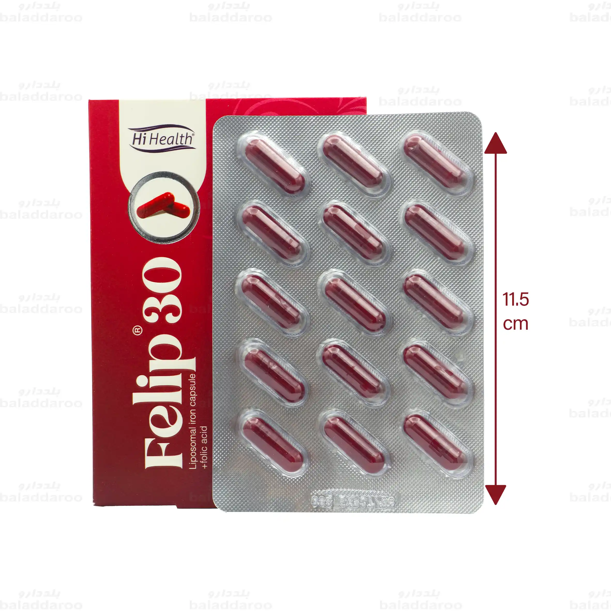 کپسول فلیپ 30 های هلث حاوی 30 میلی گرم آهن است که برای پیشگیری و درمان کم خونی ناشی از فقر آهن و کمبود فولیک اسید طراحی شده است.