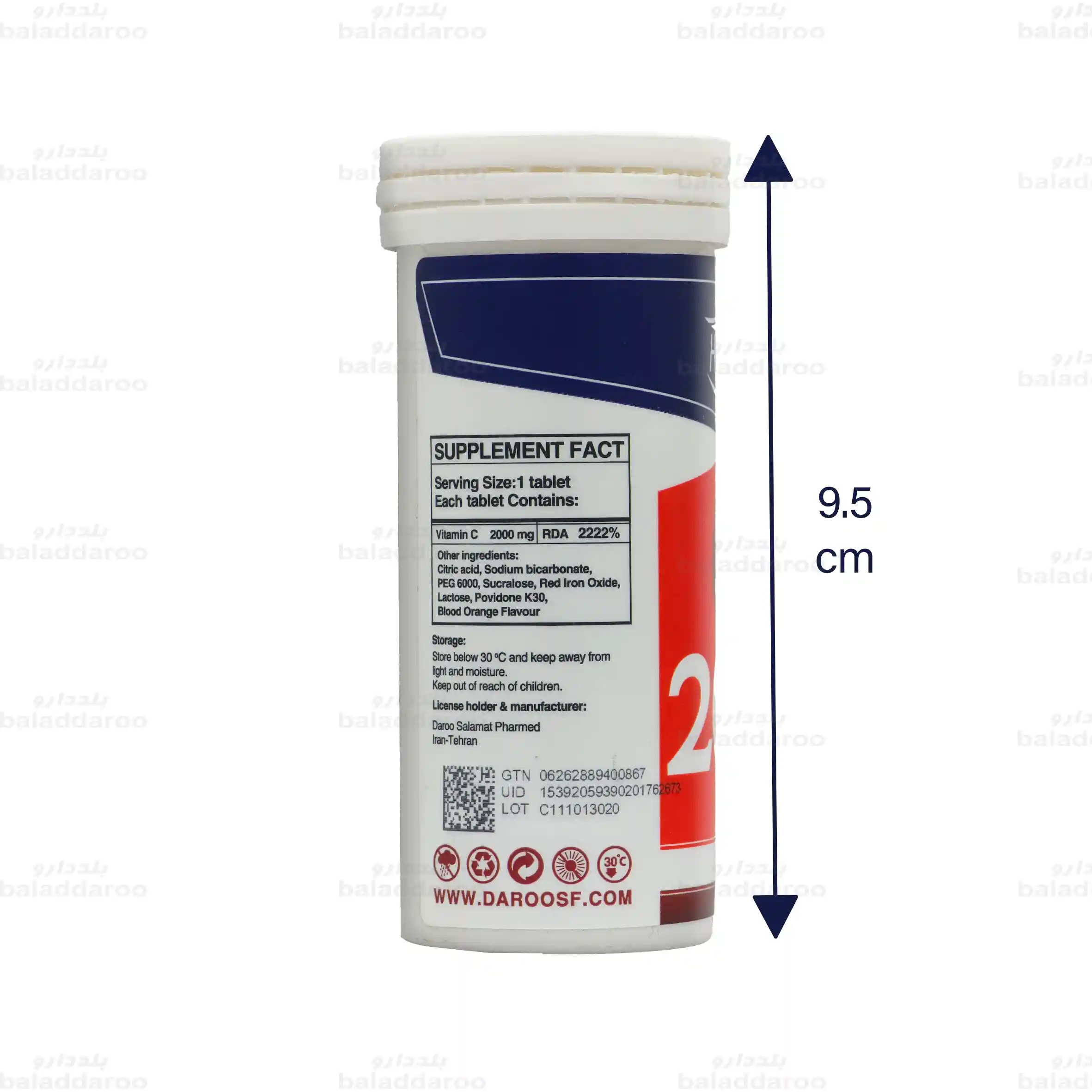 این مکمل حاوی 2000 میلی گرم ویتامین سی یا همان آسکوربیک اسید است که خواص آنتی اکسیدانی قوی دارد. این ماده می تواند از بدن در برابر آسیب رادیکال های آزاد محافظت کند. همچنین به افزایش سنتز کلاژن پوست، تقویت سیستم ایمنی، افزایش انرژی، رفع خستگی، حفظ سلامت پوست و پیشگیری از ابتلا به بیماری های مزمن کمک می کند. این فرآورده با طعم دلپذیر و متفاوت پرتقال خونی، توسط شرکت دارو سلامت فارمد تولید می شود.