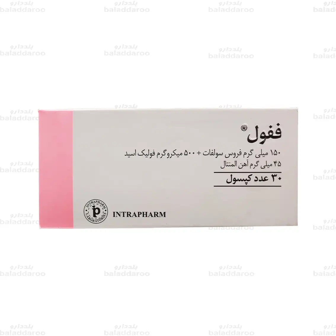 کپسول ففول اسپانسول اینترافارم حاوی آهن به فرم فروس سولفات و فولیک اسید است که به پیشگیری و درمان کم خونی ناشی از کمبود آهن و فولیک اسید، رفع علائم ناشی از آن، افزایش انرژی و کاهش خستگی کمک می کند.