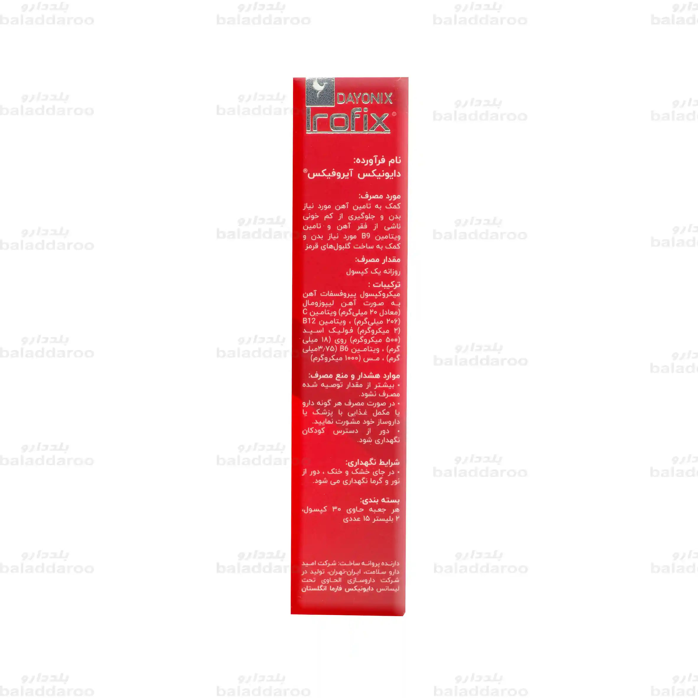 با مراجعه به سایت داروخانه آنلاین بلد دارو می توانید نسبت به خرید قرص آیروفیکس دایونیکس اقدام نمایید. پس از کسب اطلاعات درباره محصول و دریافت مشاوره رایگان، سفارش خود را ثبت کنید. بلد دارو تمامی سفارشات را در کوتاه ترین زمان ممکن و با بسته بندی مناسب به دست شما می رساند.