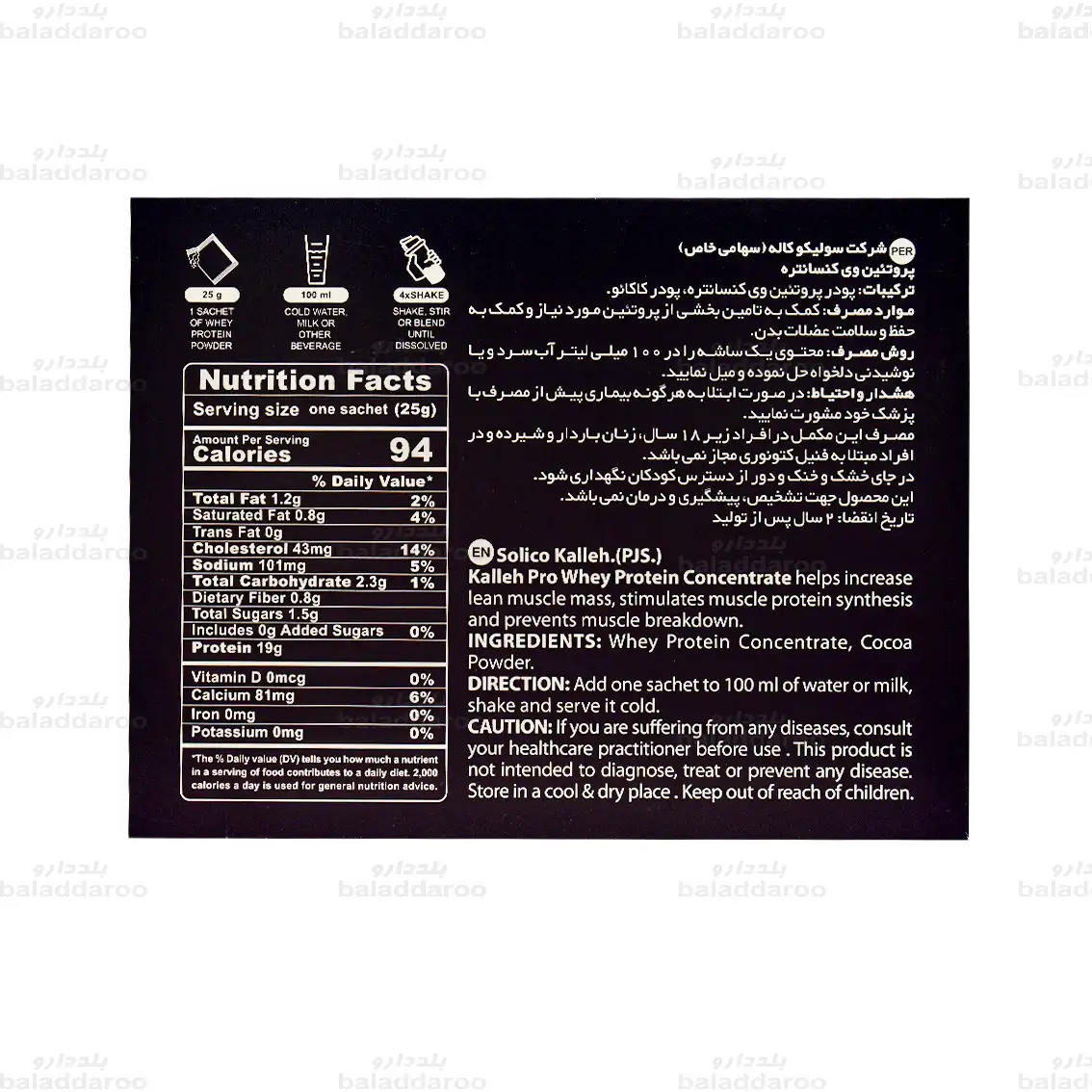 جدول ترکیبات و ترکیبات جانبی ساشه پروتئین وی کاله