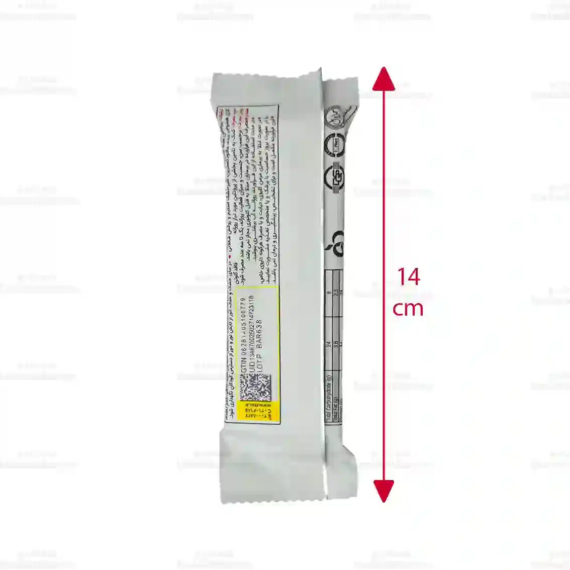 این محصول در وزن 45 گرم و در سه طعم گوناگون حاوی 14 گرم پروتئین است که انرژی معادل 184 کیلوکالری تامین می کند.