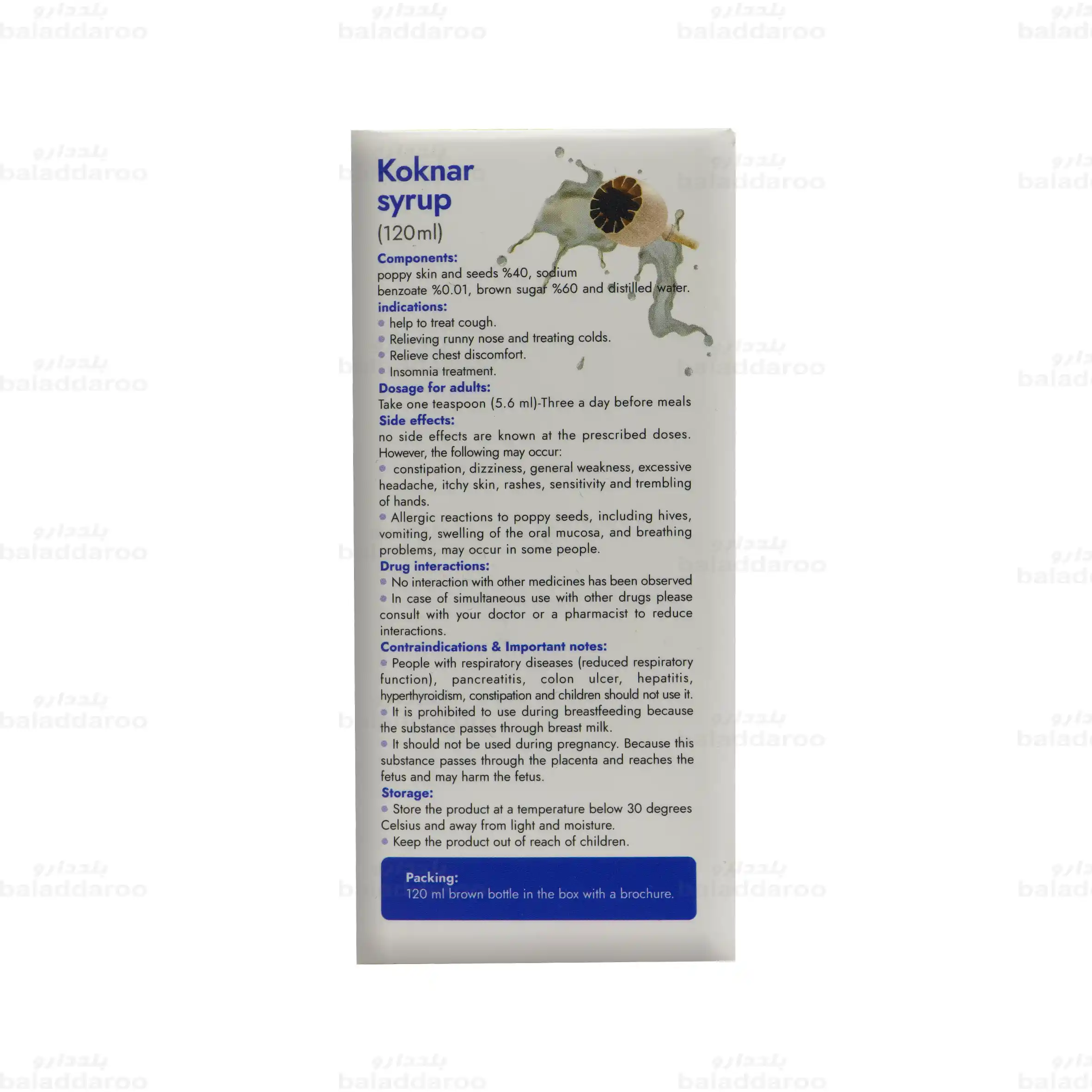 شربت کوکنار حاوی پوست و بذر خشخاش است که به درمان سرفه، رفع آبریزش بینی، رفع ناراحتی سینه و درمان بی خوابی کمک می کند.