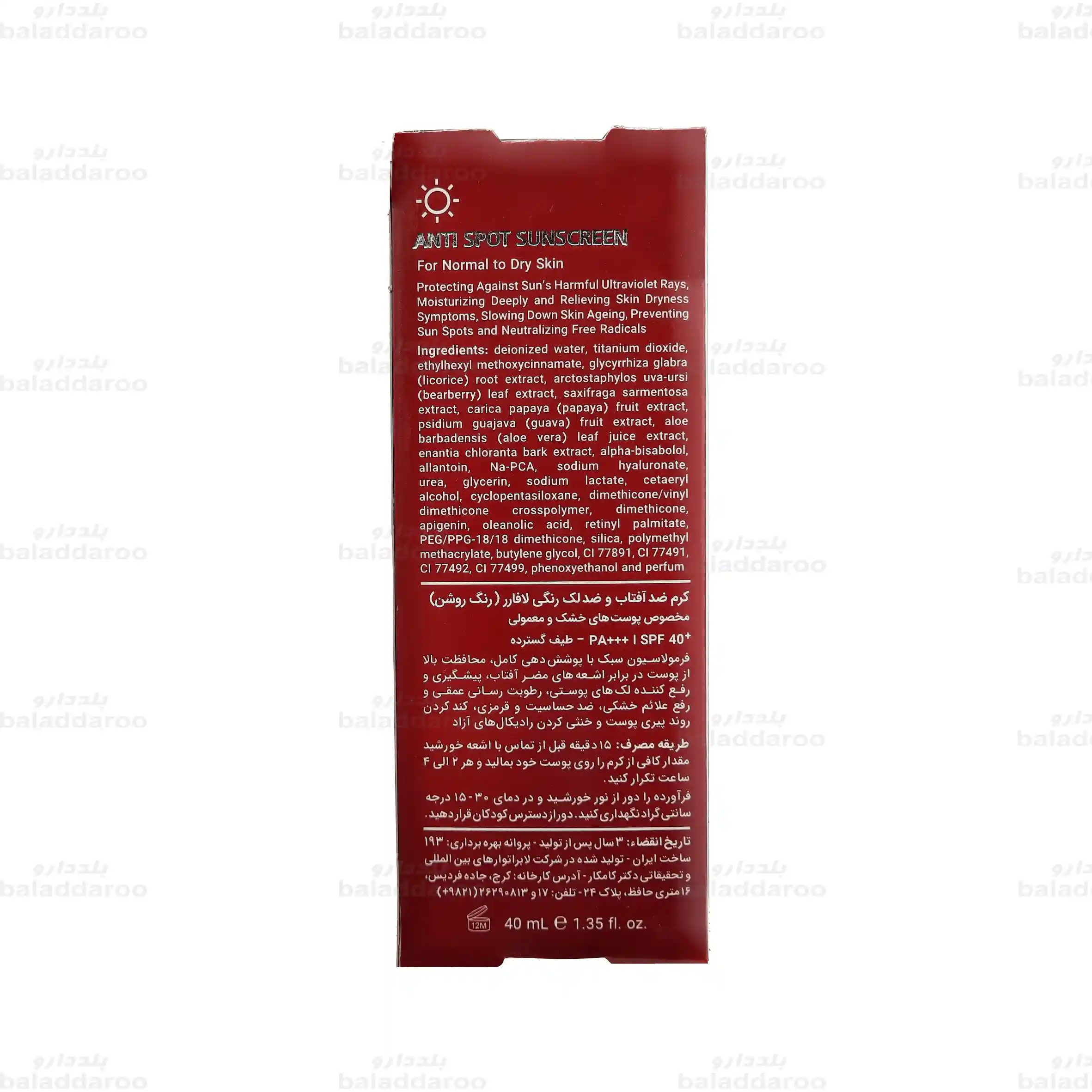 کرم ضد آفتاب ضد لک رنگی لافارر پوست خشک SPF40 حجم 40 میلی لیتر