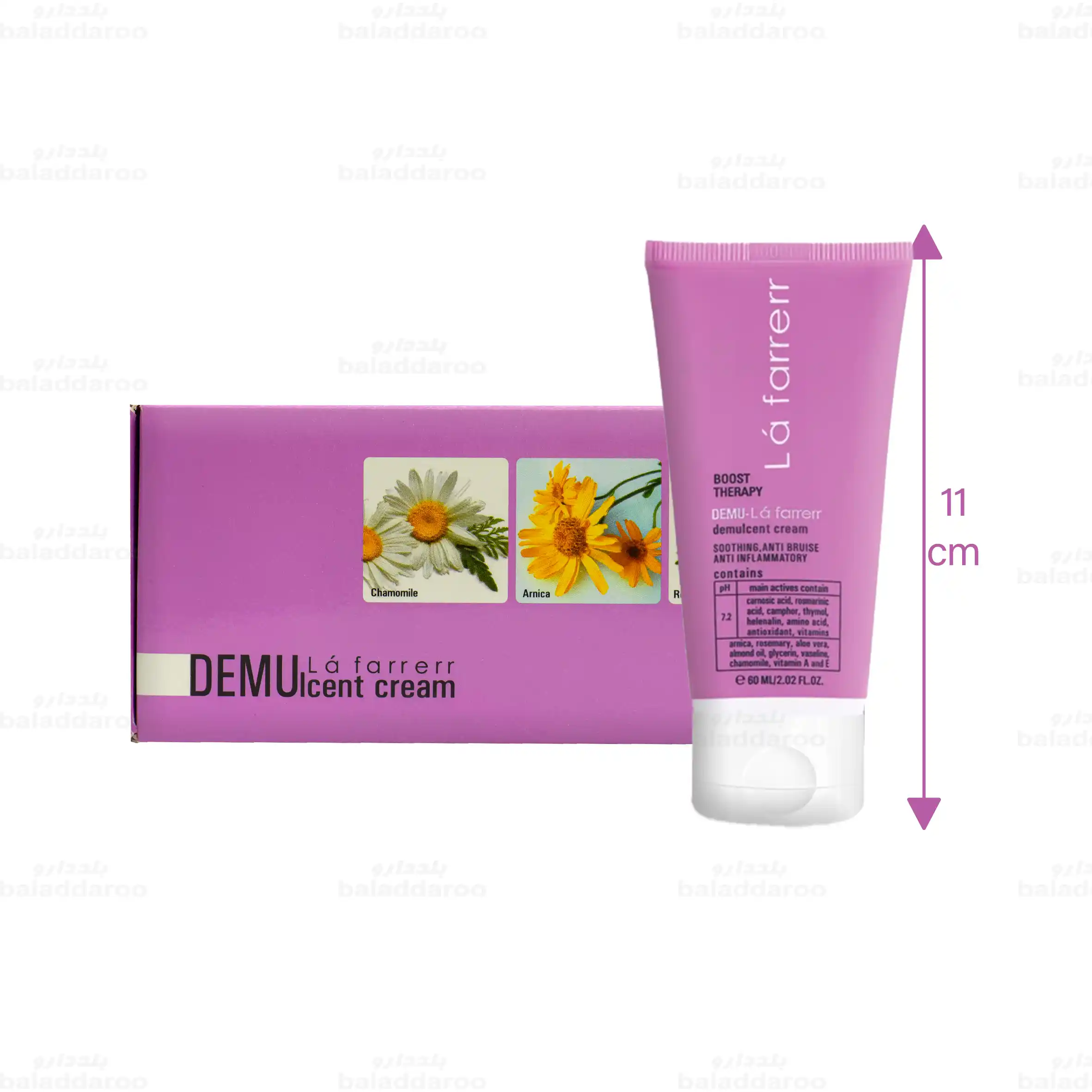 با فرمولاسیون فوق العاده و بافت سبک، به کاهش تنش های عضلانی کمک و در حفظ رطوبت و نرمی پوست نقش بسزایی ایفا می کند. دمو لافارر با بهبود گردش خون موضعی، اثر ضد درد، ضد التهاب و ضد کبودی روی پوست دارد؛ همچنین استفاده از آن کبودی های ایجاد شده در اثر ضربه و جراحات را از بین می برد. به علاوه شما عزیزان برای رفع التهابات و کبودی های ناشی از لیزر، لیپوساکشن، تزریق بوتاکس، ژل و چربی می توانید از این کرم استفاده نمایید. همچنین با بویی ملایم و بافتی سبک، در هر نقطه از بدن (حتی دور چشم) قابل مصرف است.