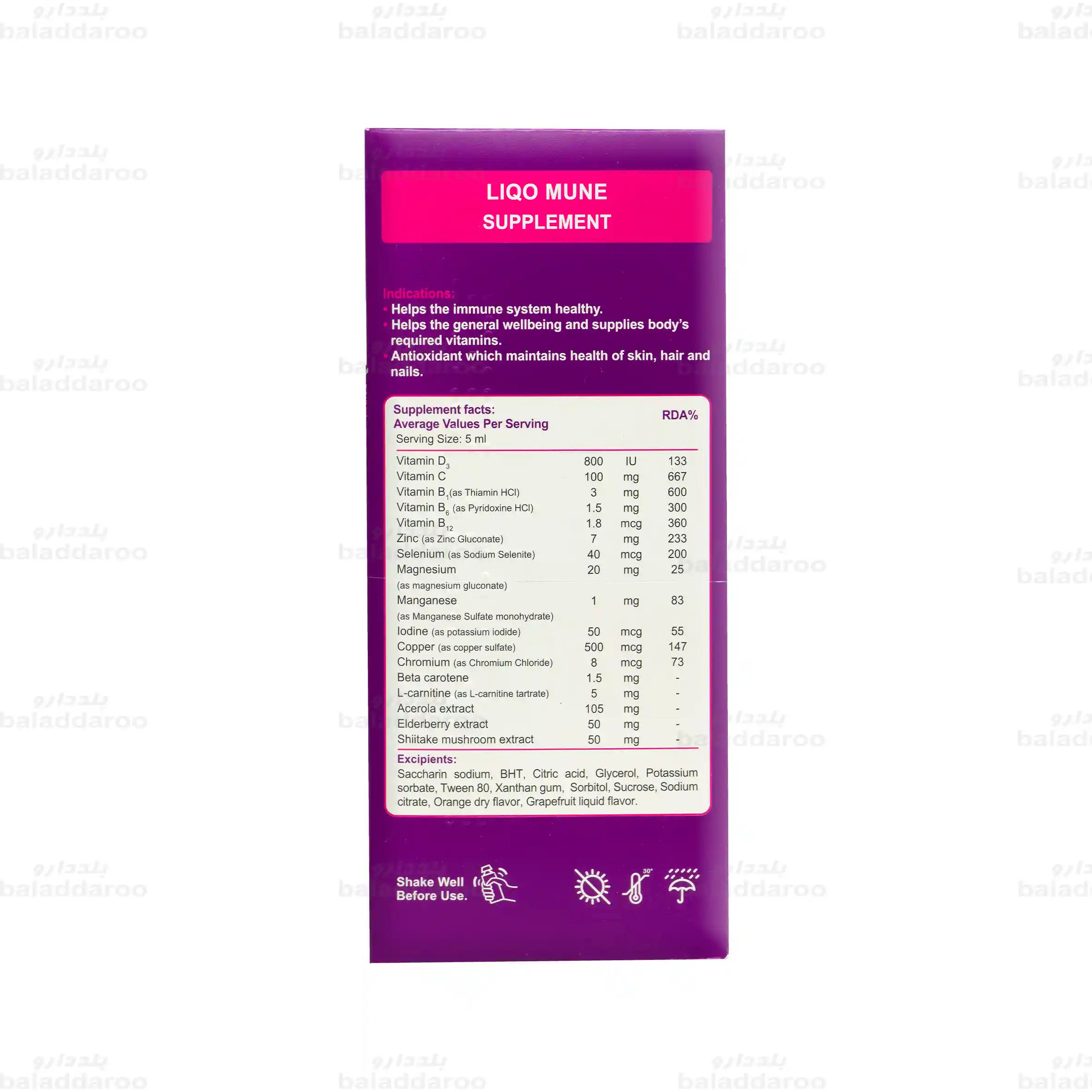 - قبل از مصرف بطری را به خوبی تکان دهید.