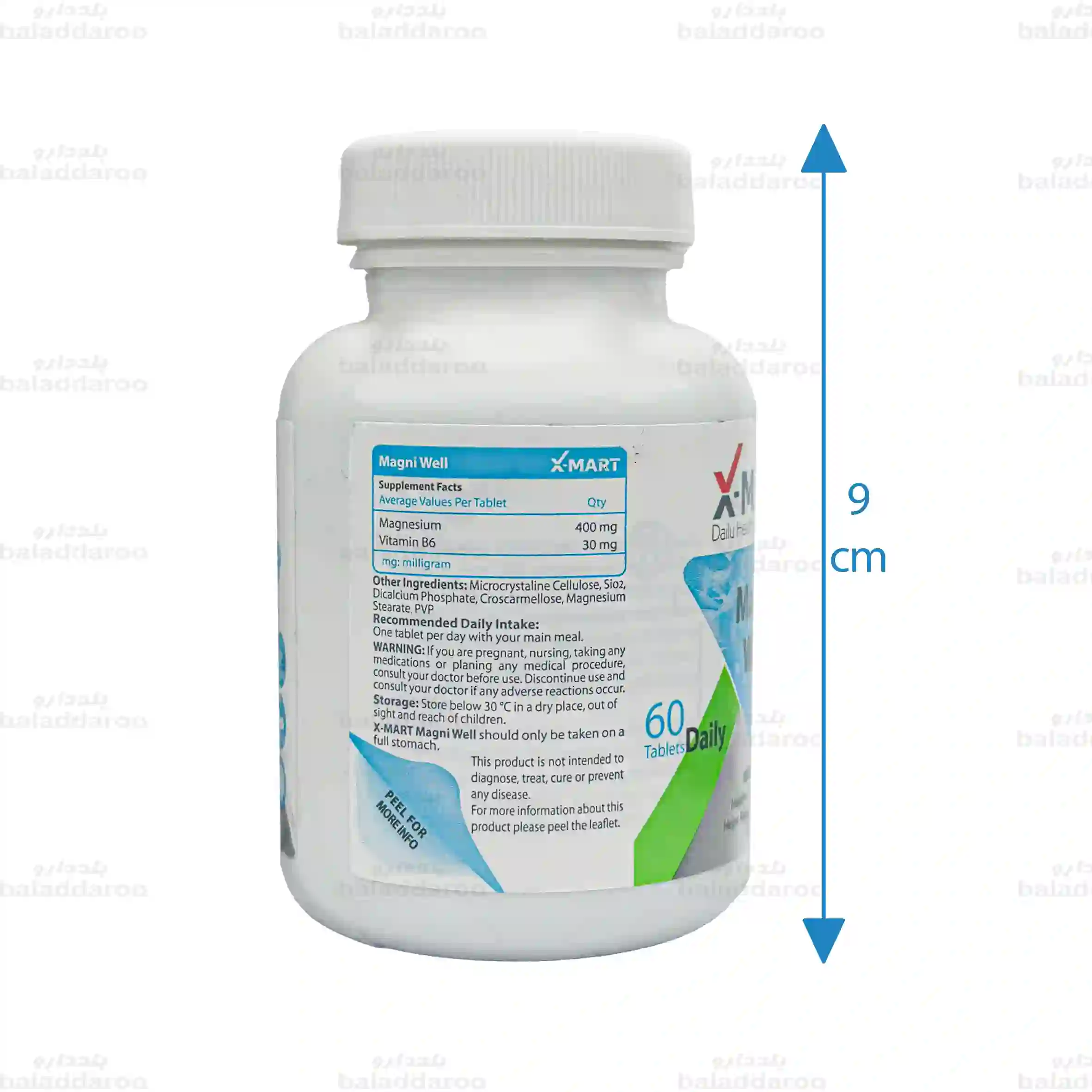 قرص مگنی ول ایکس مارت حاوی 400 میلی گرم منیزیم و 30 میلی گرم ویتامین B6 است که با هدف حمایت از عملکرد سیستم عصبی و عضلانی، کاهش گرفتگی عضلات و تسکین سردردهای میگرنی تولید می شود.