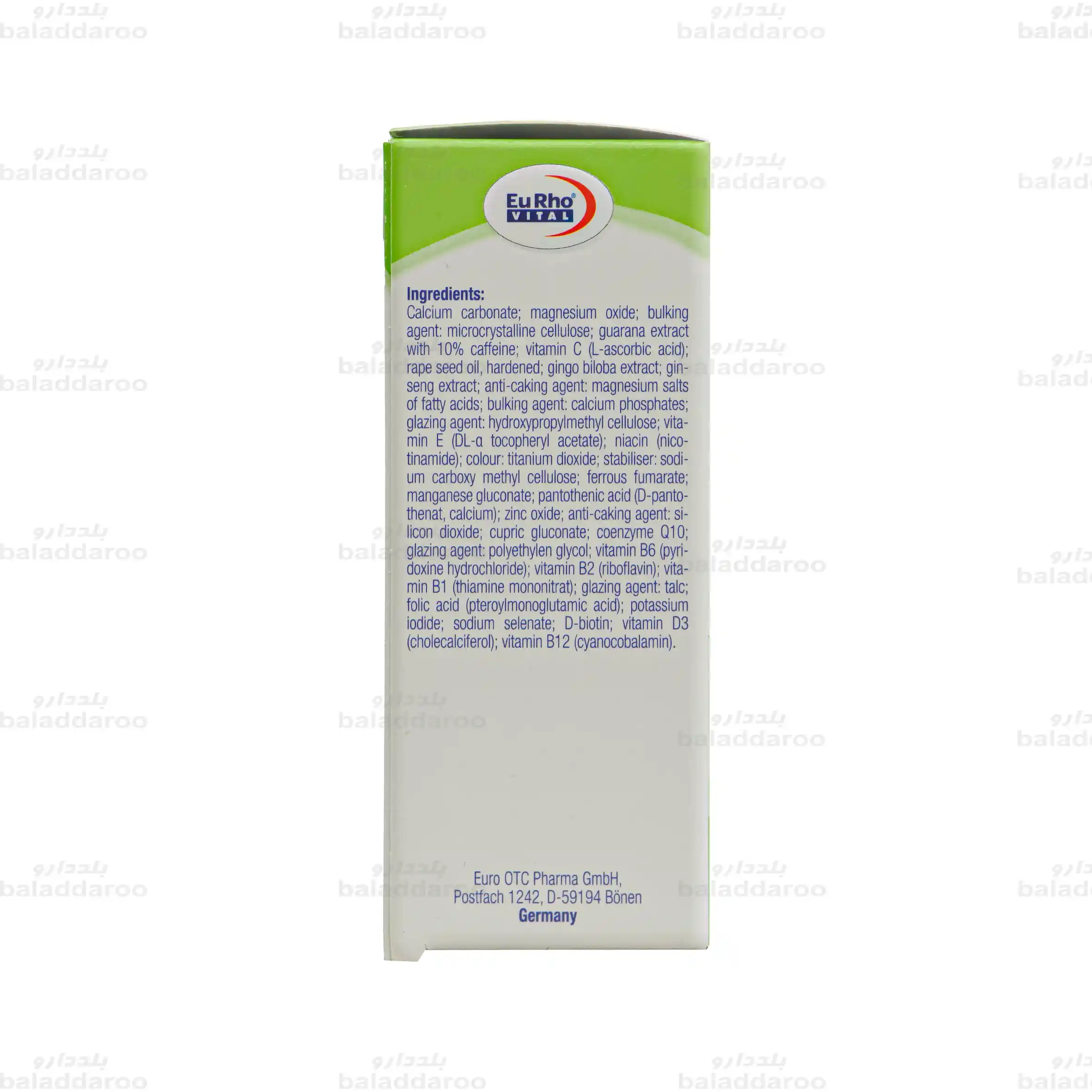 قرص منتال انرژی یوروویتال ترکیبی از ویتامین ها، مواد معدنی و عصاره های گیاهی است که به تقویت حافظه، افزایش توان ذهنی و بهبود عملکرد سیستم عصبی کمک می کند.