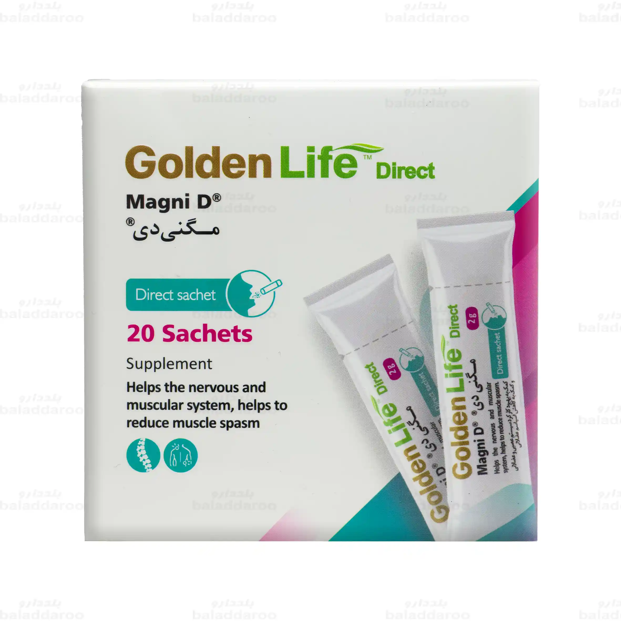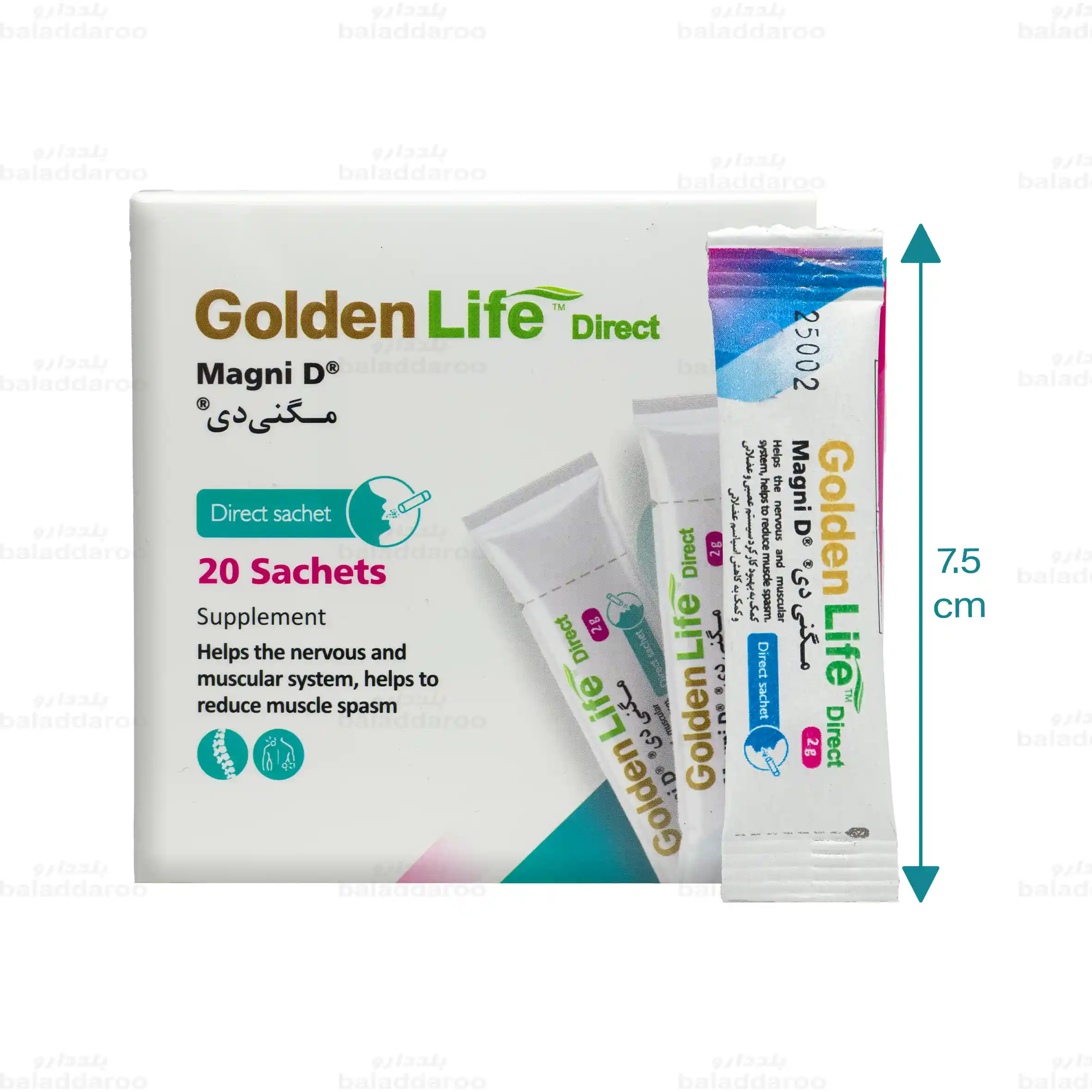 ساشه مگنی دی گلدن لایف یک مکمل غذایی حاوی منیزیم و ویتامین D است که به تقویت عضلات، سیستم عصبی و سلامت استحوان ها کمک می کند.