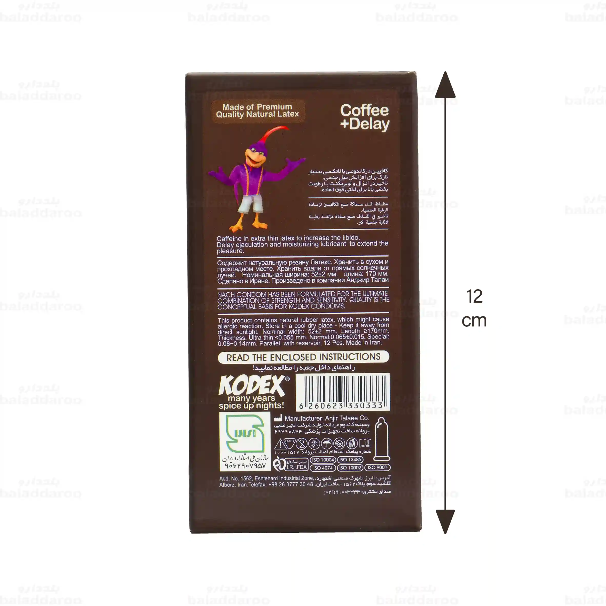 با خرید کاندوم تاخیری کافئین کدکس از داروخانه آنلاین بلد دارو، می توانید با خیالی آسوده از اصالت و کیفیت محصول اطمینان داشته باشید. سفارش های شما در تهران به سرعت تحویل داده می شوند و ارسال به شهرستان ها نیز با دقت و سرعت بالا انجام می گیرد. تمام محصولات در بسته بندی استاندارد و مقاوم قرار داده می شوند تا در طول مسیر هیچ آسیبی به آن ها وارد نشود و شما تجربه ای راحت و مطمئن از خرید اینترنتی داشته باشید.